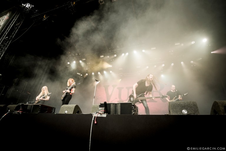 Si le premier groupe souffrait quelque peu de l’horaire qui lui avait été attribué, il n’en est rien pour VUUR, qui attire en un clin d’œil une foule dense, tandis que les musiciens commencent à s’installer. Il faut dire que la chanteuse de ce tout nouveau groupe n’est autre que la grande Anneke Van Giersbergen, qu’on ne présente plus, et pour qui le Dynamo est loin d’être inconnu, puisqu’elle a pu y participer en 1996 et 1999 avec les excellents The Gathering. En outre, la talentueuse artiste demeure une grande favorite des metalleux, que ce soit sur sa terre natale ou ailleurs dans le monde !