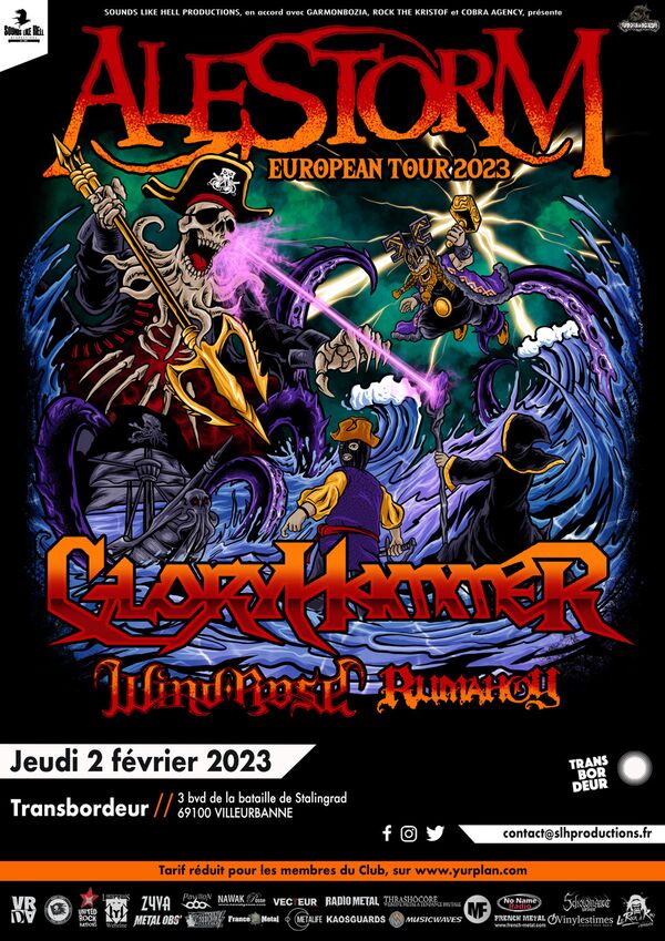 ALESTORM + GLORYHAMMER + WIND ROSE + RUMAHOY @ Transbordeur, Villeurbanne (69) // Jeudi 2 février 2023   Pour présenter sur scène leur 7ème album « Seventh Rum of a Seventh…