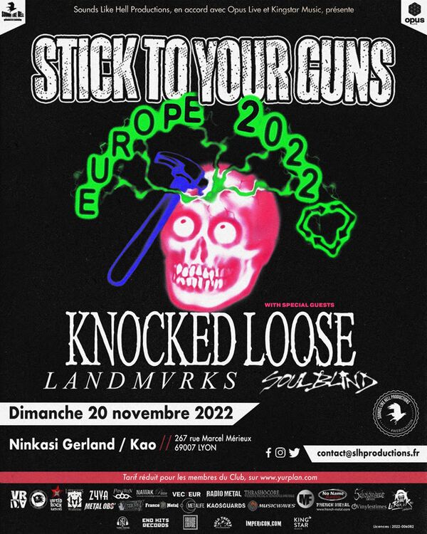 en accord avec Opus Live, présente STICK TO YOUR GUNS + KNOCKED LOOSE + LANDMVRKS + SOUL BLIND @ Ninkasi Gerland / Kao, Lyon // Dimanche 20 novembre 2022 Ils…