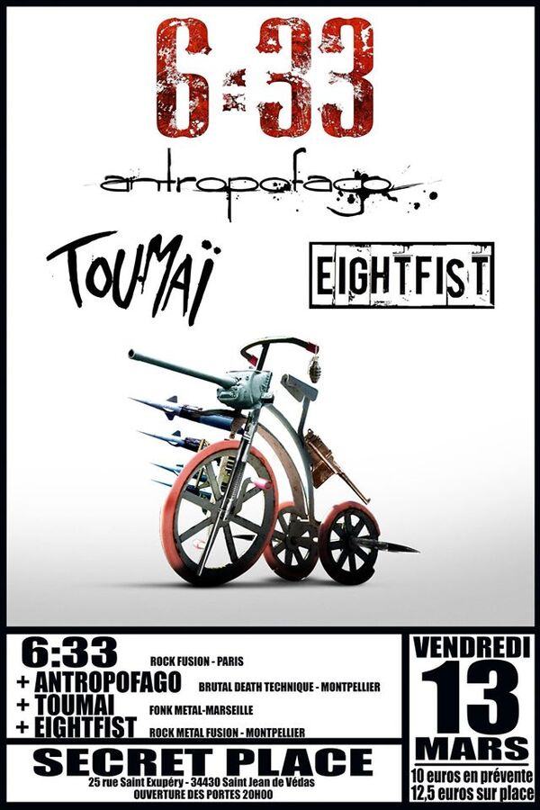 6H33 + ANTROPOFAGO + TOUMAÏ + EIGHTFIST, Secret Place, Saint-Jean-de-Védas, 13/03/2015