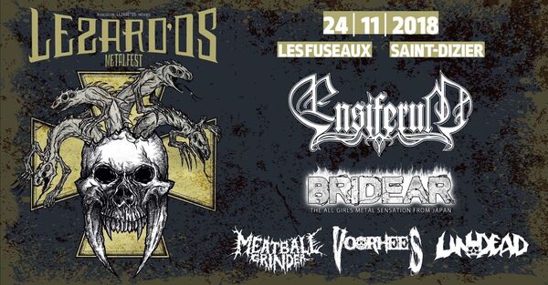 Le LEZARD’OS METAL FESTIVAL qui réunira ENSIFERUM (Finlande), CRISIX (Espagne), BRIDEAR (Japon), UNDEAD (France),VOORHEES (France) et MEATBALL GRINDER (France) se tiendra le 24 Novembre dans la salle « Les Fuseaux » à Saint-Dizier (En Haute-Marne!). Le LEZARD’OS est imbriqué…