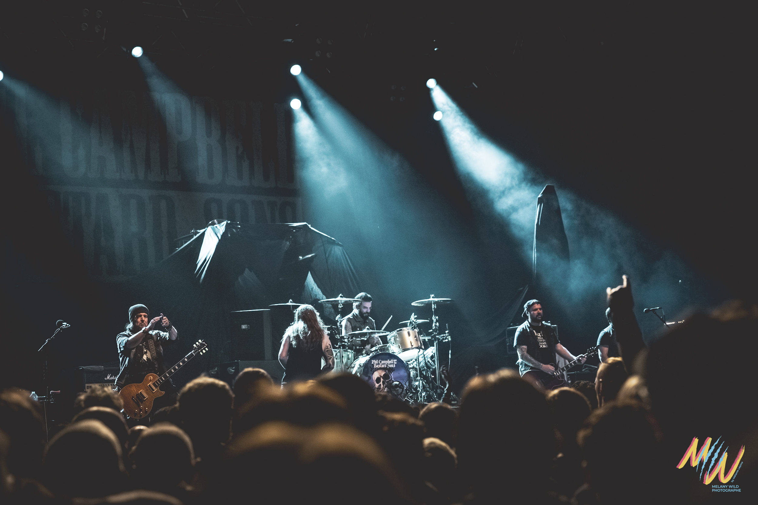 Pas de première partie ce soir : Phil Campbell et ses « bastards » de fils, ouvrent le set à 19h30 avec « we’re the bastards ». Ils ne tarderont pas à chauffer la salle, et de (re)conquérir le cœur des vieux fans de heavy. Avec une setlist composée de dix titres, dont « Schizophrenia » et « Strike the Match » issus du dernier album Kings Of The Asylum, agrémentée par quatre reprises de Motörhead : « Going To Brazil », « Ace Of Spades », « Born To Raise Hell » et « Killed By Death ». Un show carré, avec un Phil légèrement en retrait comparé à ses fils et au chanteur Joel Peters qui captivent le public du début à la fin.