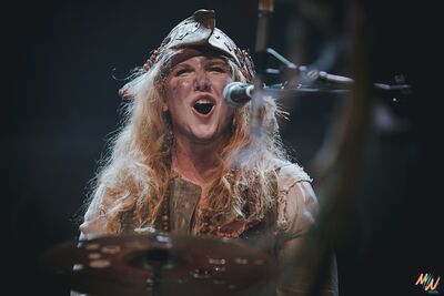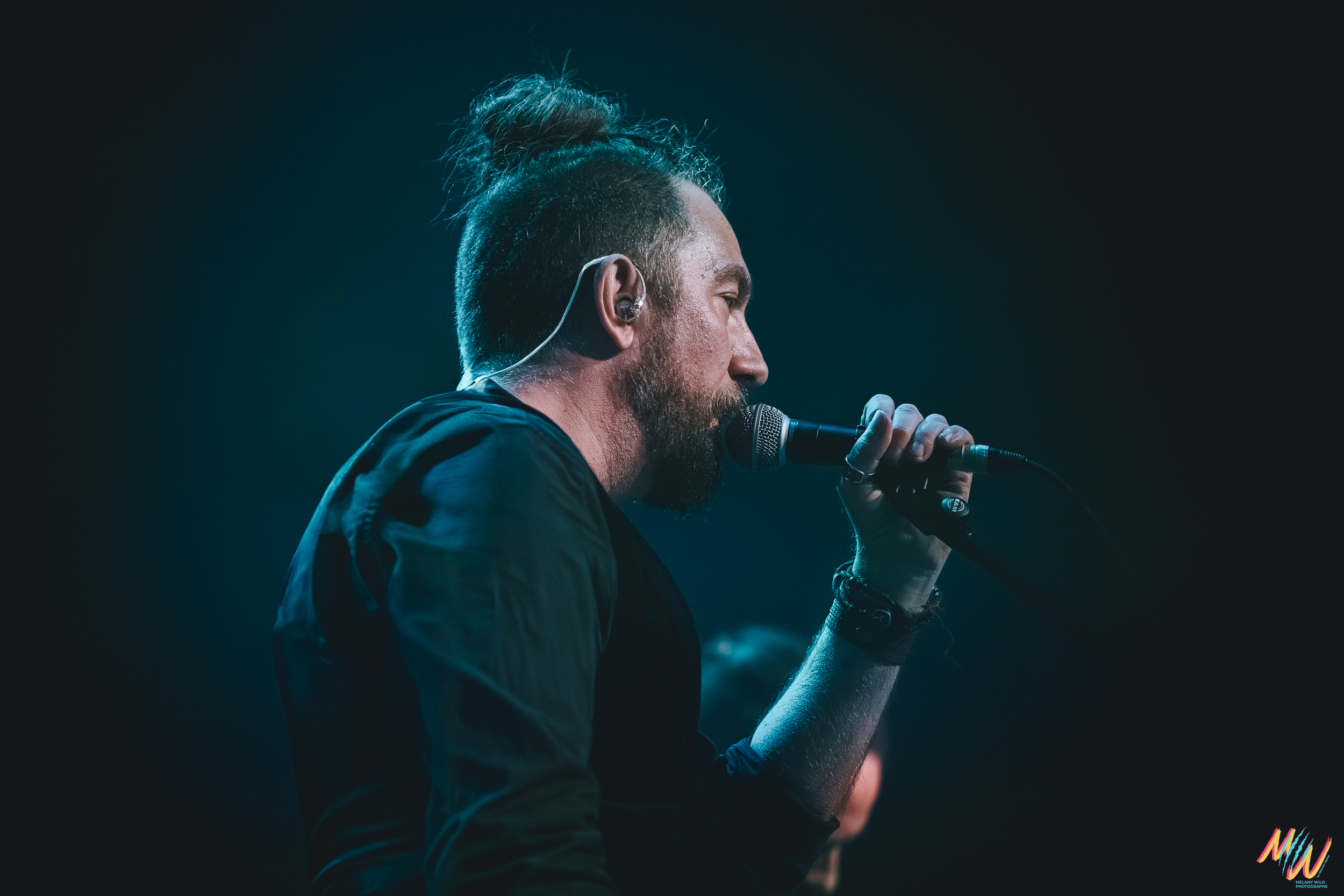 Le groupe débute son show avec « Belladonna », première chanson issue de leur dernier album HEX, sorti en 2025. Le design de la pochette est d’ailleurs repris en fond de scène, accompagné de fumigènes et de lumières bleutées et sombres, plongeant le public dans une atmosphère très différente des groupes précédents.