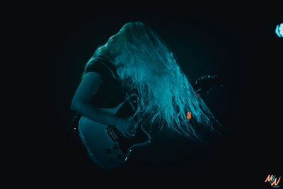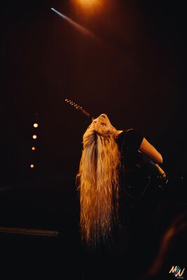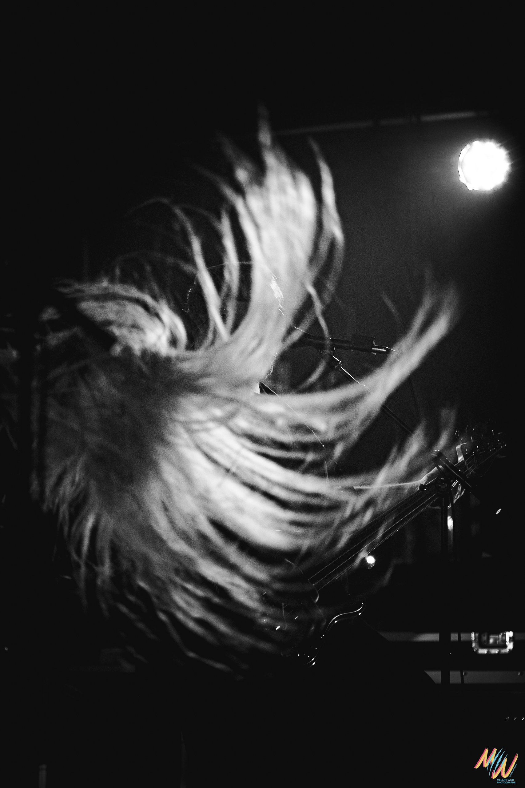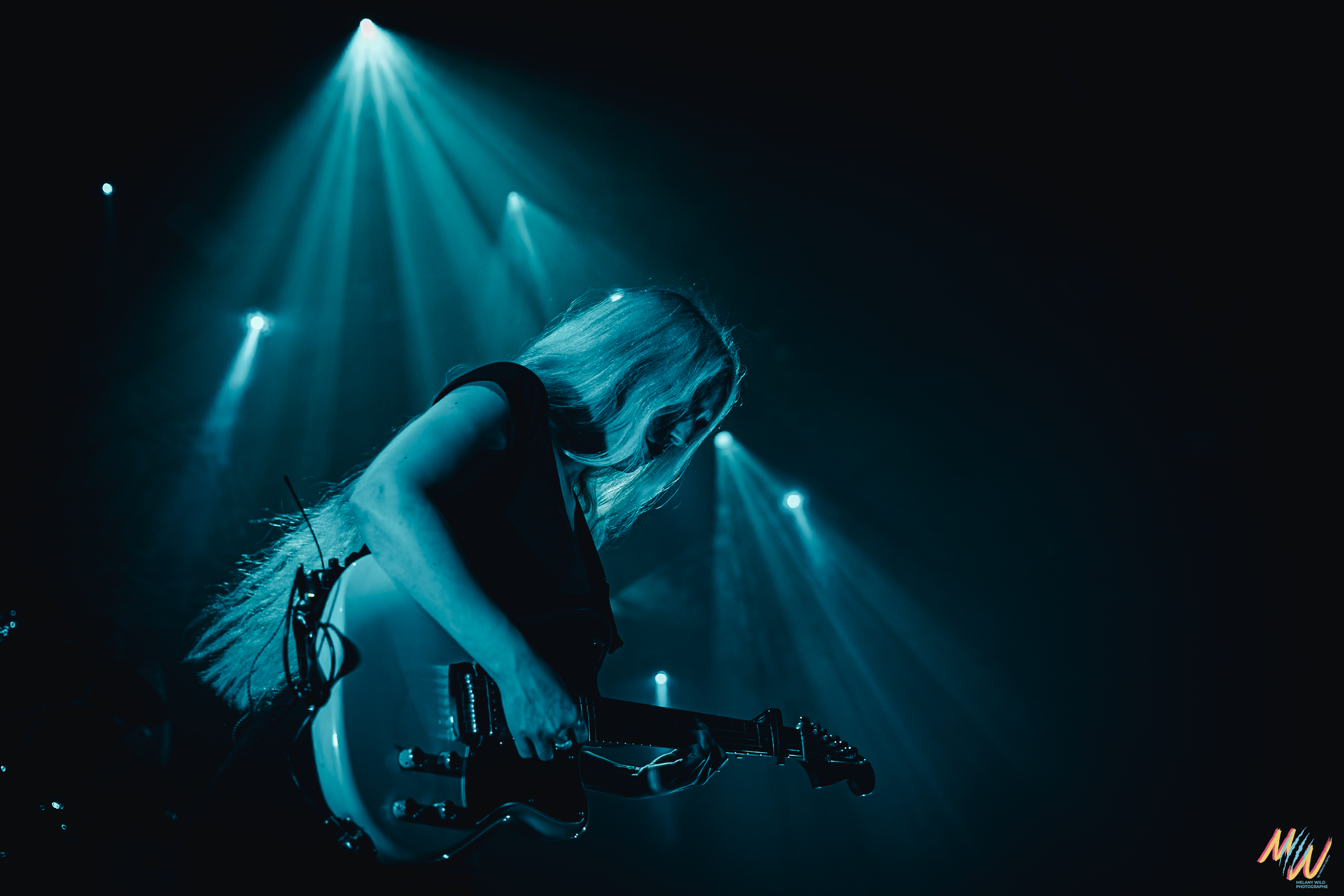 Très communicative, elle partage avec le public quelques mots sur sa tournée, qui s’achève ce soir à Annecy, une ville qu’elle dit trouver magnifique. Peut-être que le lac lui rappelle ses origines norvégiennes…Fidèle à ses racines, elle pose un instant sa guitare pour chanter a cappella une chanson dans sa langue maternelle. Plus un bruit dans la salle, excepté la pureté de sa voix qui résonne à travers la salle. Tout au long du concert, Sylvaine nous entraîne dans son univers hypnotisant, mêlant douceur, growl et émotion. Une artiste à part, capable de transformer un simple concert en véritable voyage intérieur.
