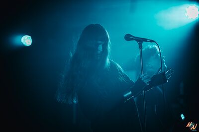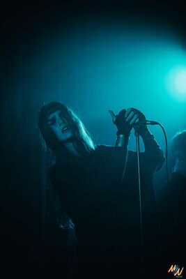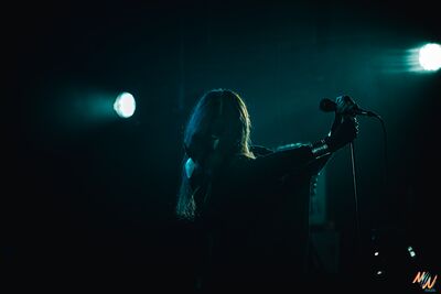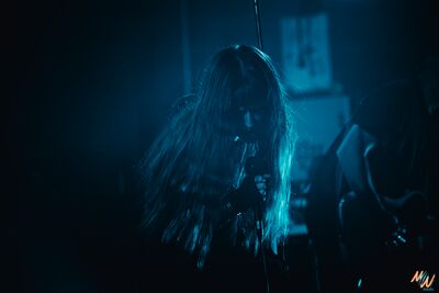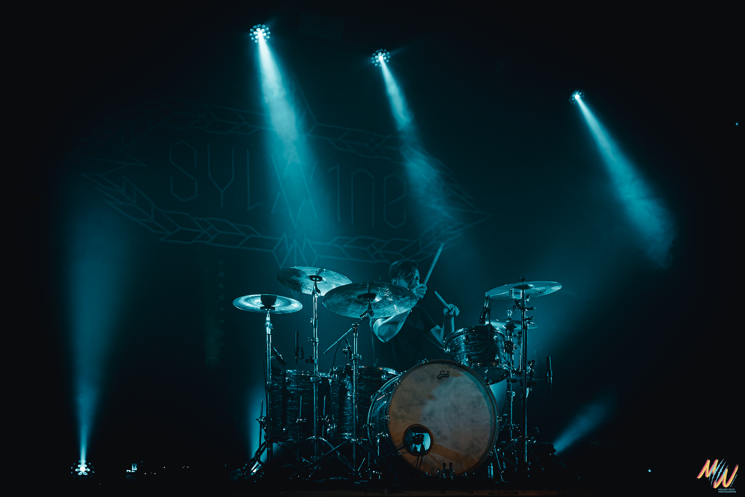 La soirée débute avec Black Bile. Dès les premières notes, l’ambiance est posée : tempos lents, atmosphère pesante, avec des moments calmes et quelques riffs plus énergiques. Les lignes de basse et le chant alternant entre clair et guttural créent un contraste saisissant. Devant son micro, la chanteuse, en transe, fait vibrer toute la salle sous des lumières bleutées. Un moment presque hors du temps, parfait pour introduire Sylvaine.