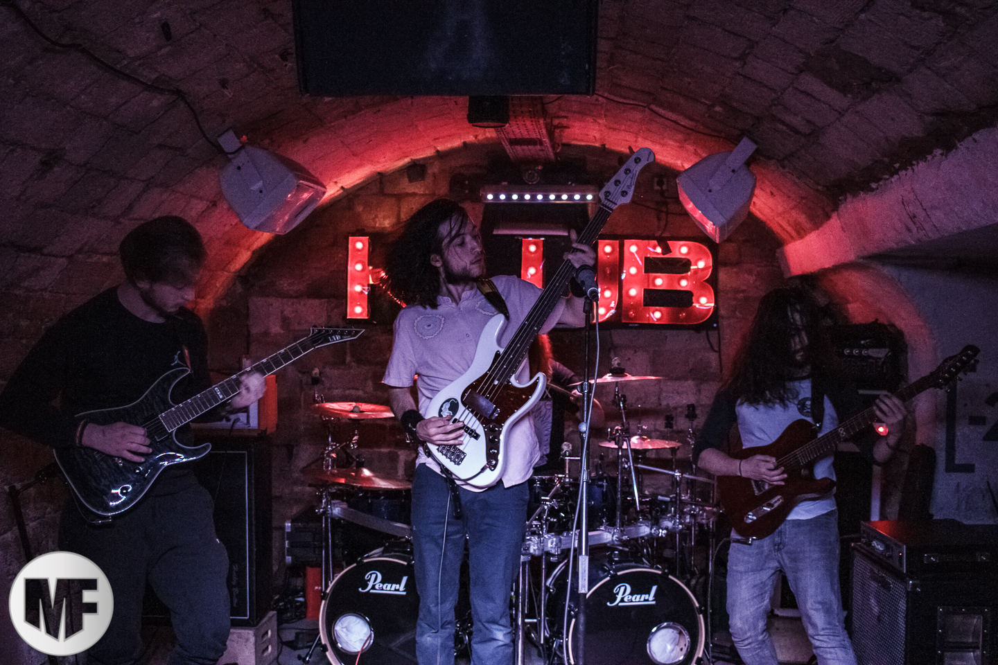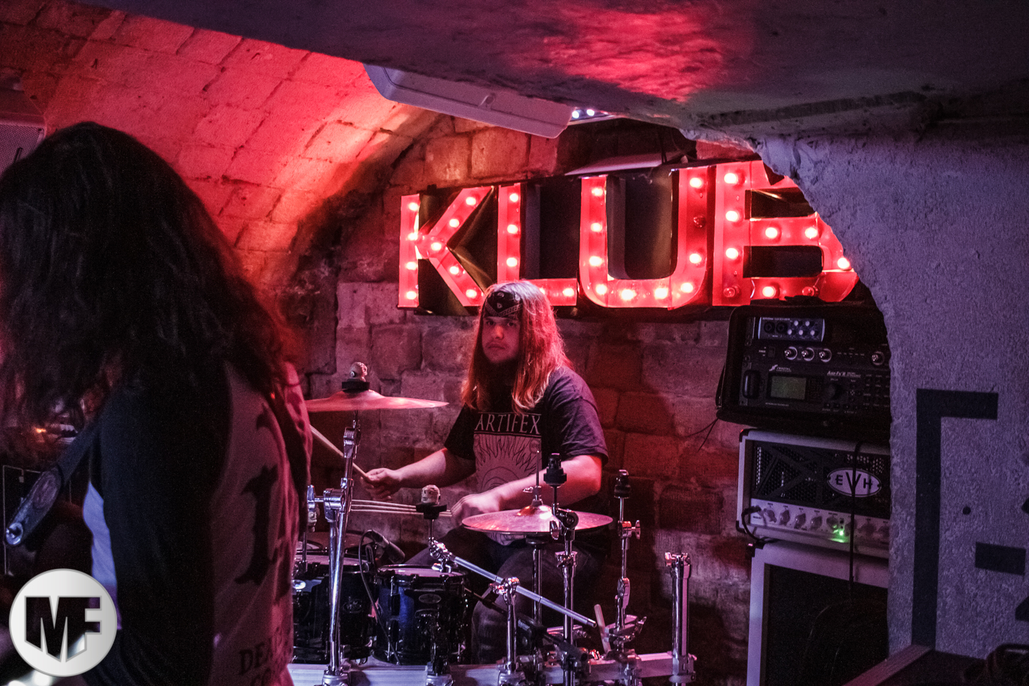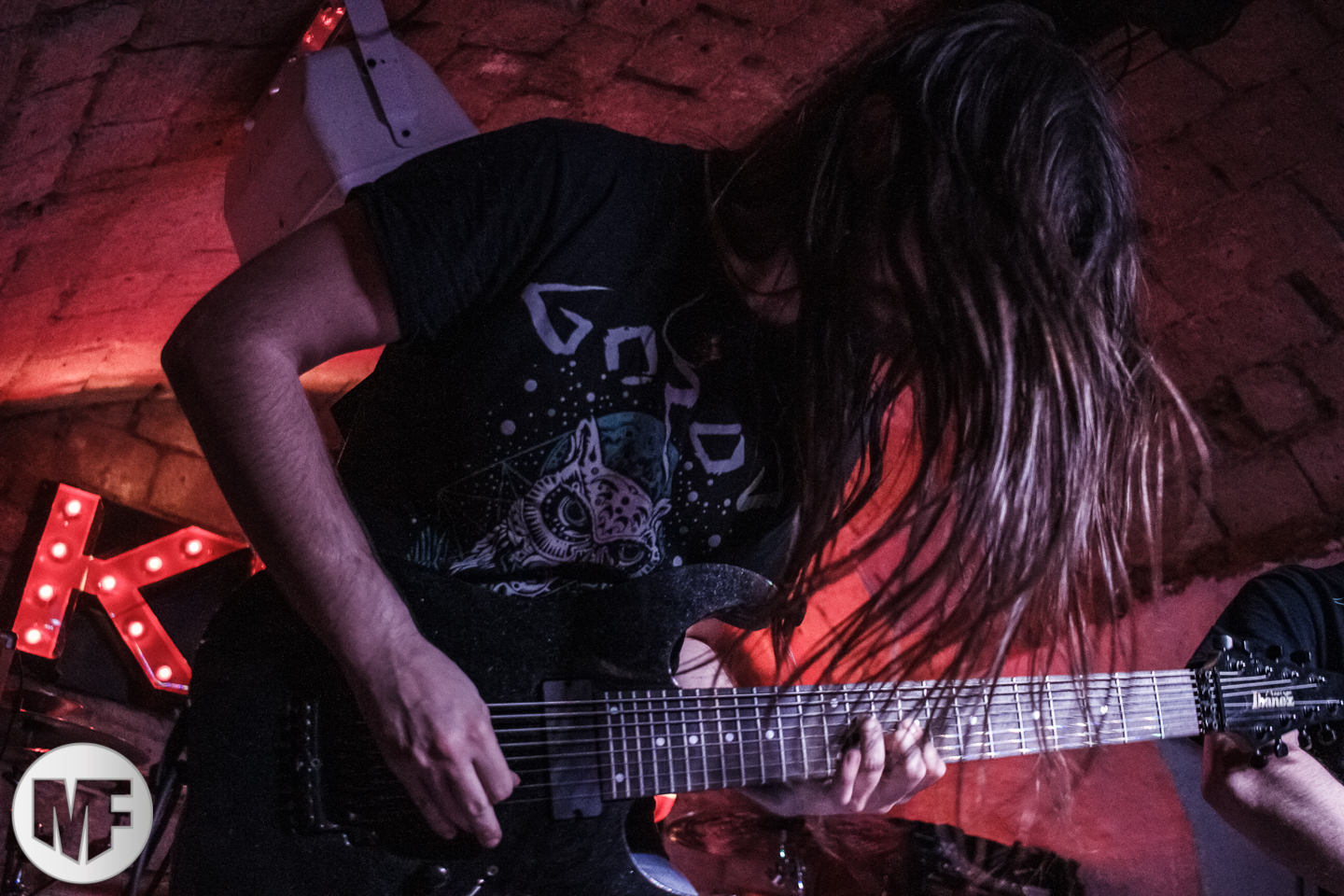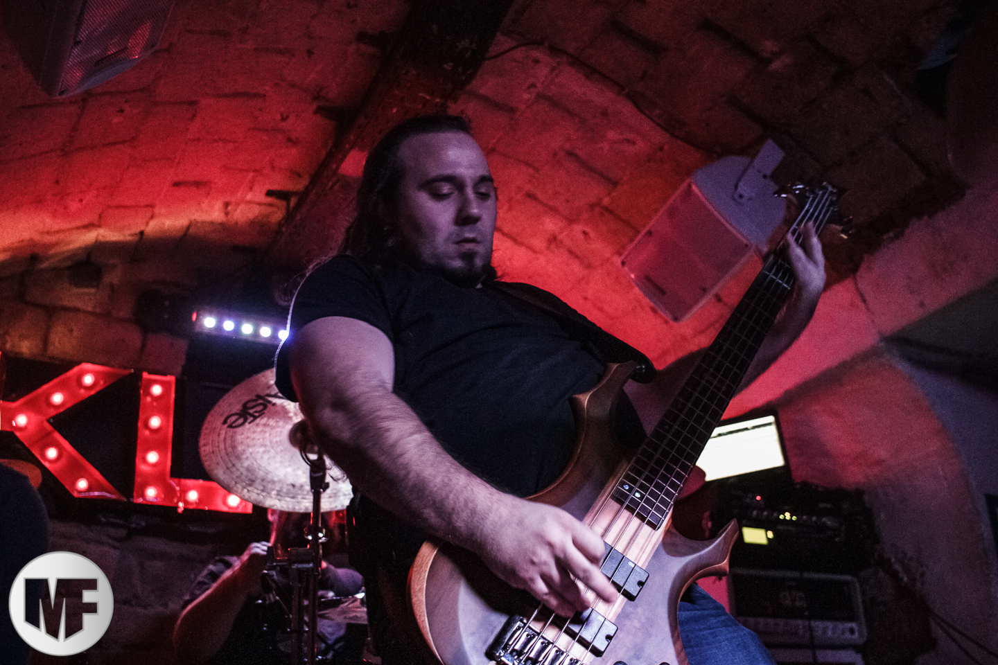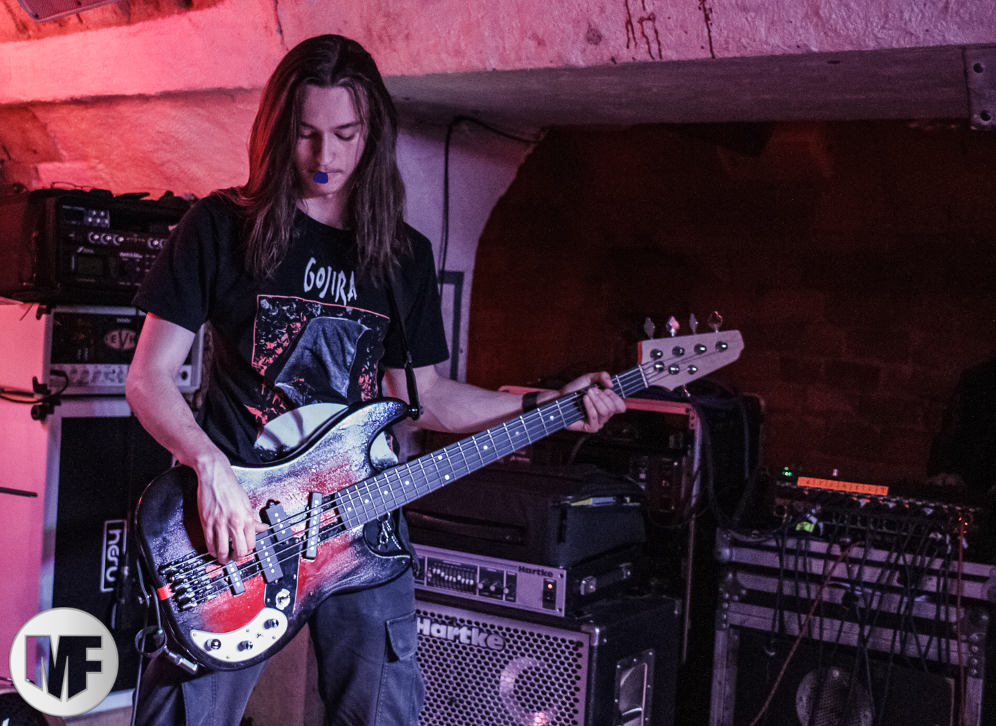 ENKARNIS interrompt le silence de la salle par une douce atmosphère planante et progressive, puis commence les riffs avec des growls relativement lourds. L’énergie du chanteur se fait ressentir dès la première chanson. Le jeu de batterie trouve parfaitement sa place avec les lignes de basses, surtout pendant les parties instrumentales qui, selon moi, peuvent devenir la marque de fabrique d’ENKARNIS. On peut dire qu’il y a des influences de GOJIRA dans l’écriture de certaines partitions. À noter des passages en taping, que ce soit pour la basse ou la guitare avec une très bonne maîtrise. Voilà une belle petite alliance entre old death metal avec le new death metal !