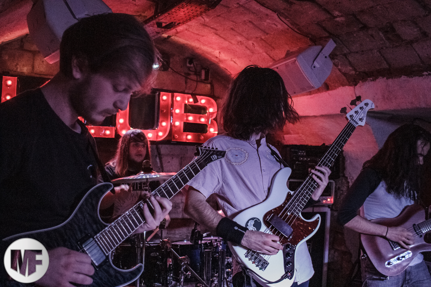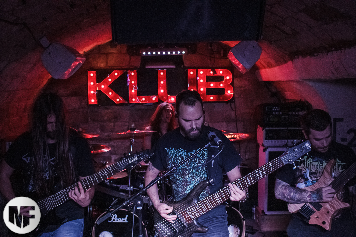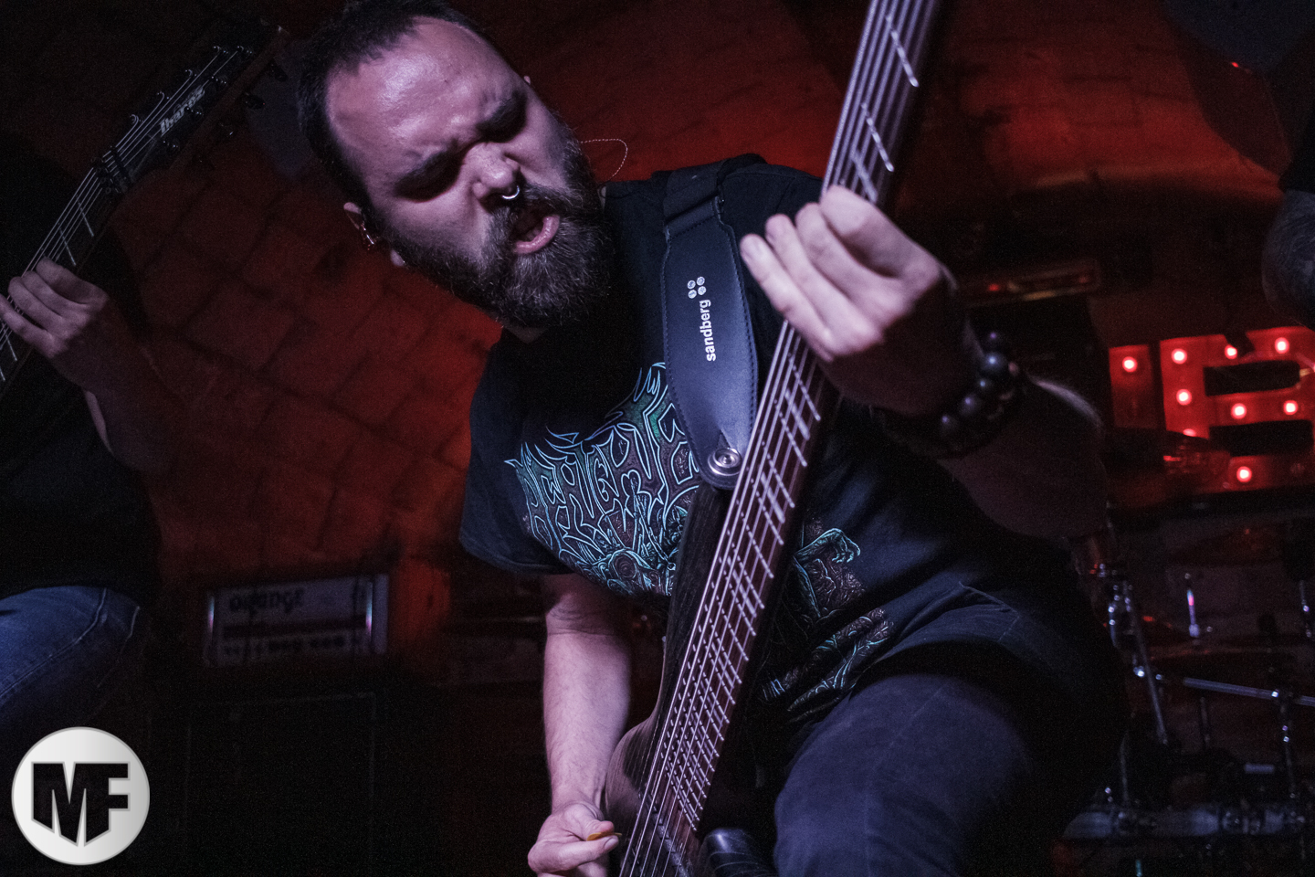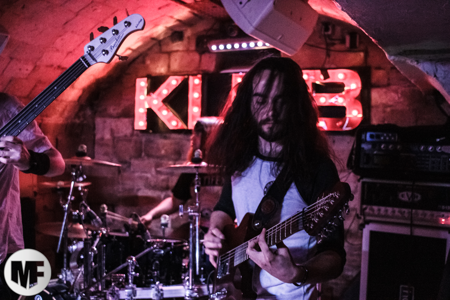 ENKARNIS interrompt le silence de la salle par une douce atmosphère planante et progressive, puis commence les riffs avec des growls relativement lourds. L’énergie du chanteur se fait ressentir dès la première chanson. Le jeu de batterie trouve parfaitement sa place avec les lignes de basses, surtout pendant les parties instrumentales qui, selon moi, peuvent devenir la marque de fabrique d’ENKARNIS. On peut dire qu’il y a des influences de GOJIRA dans l’écriture de certaines partitions. À noter des passages en taping, que ce soit pour la basse ou la guitare avec une très bonne maîtrise. Voilà une belle petite alliance entre old death metal avec le new death metal !