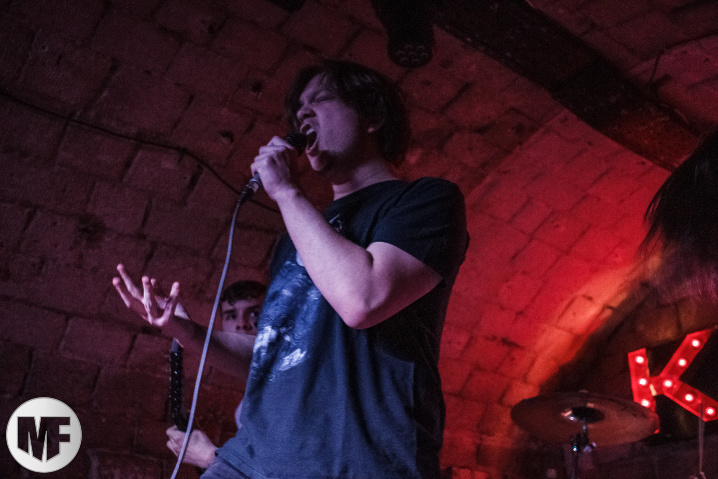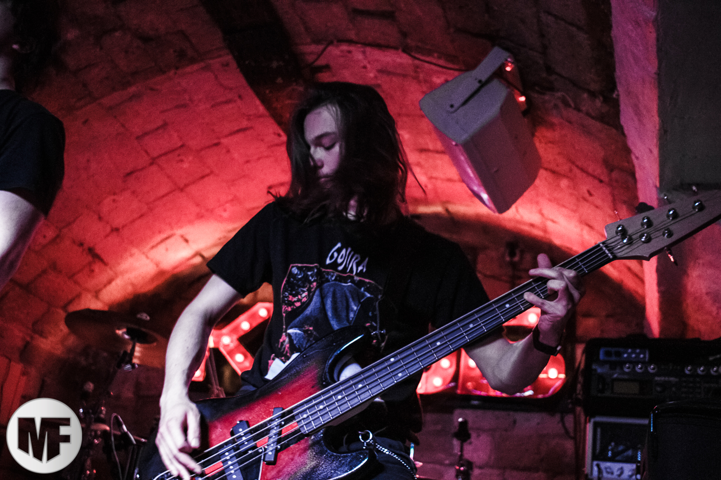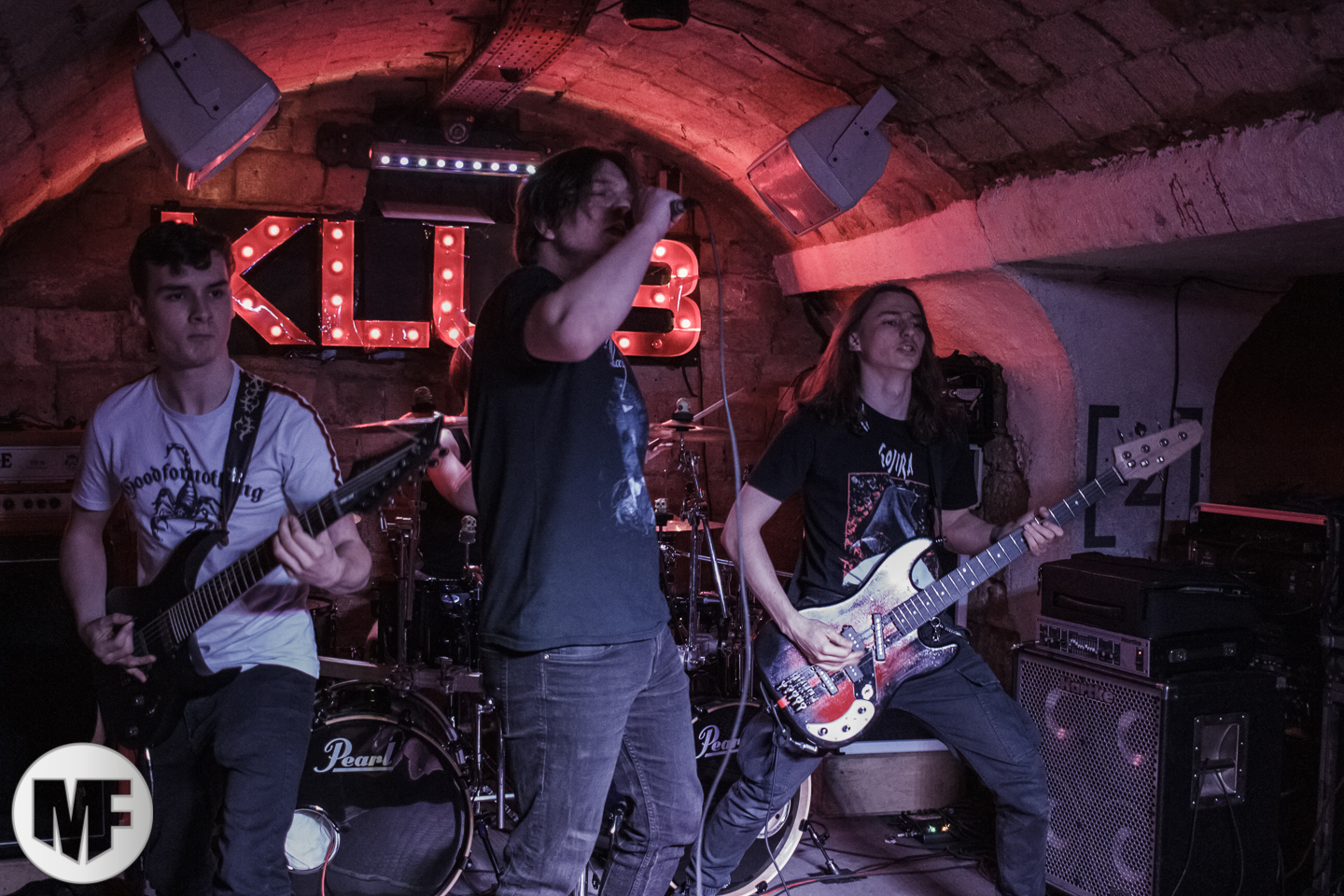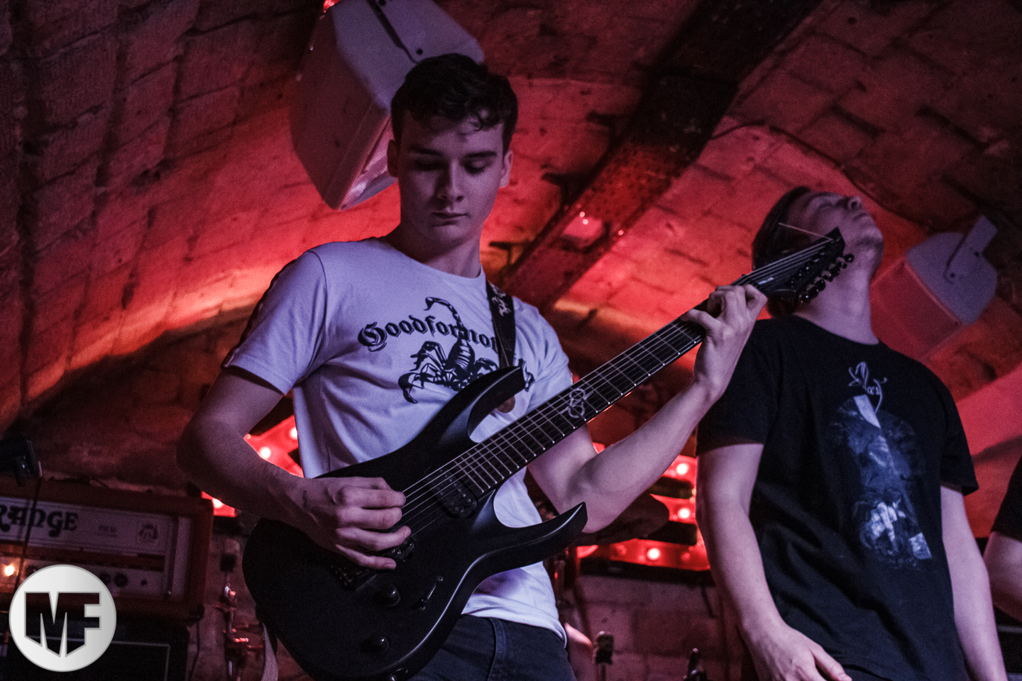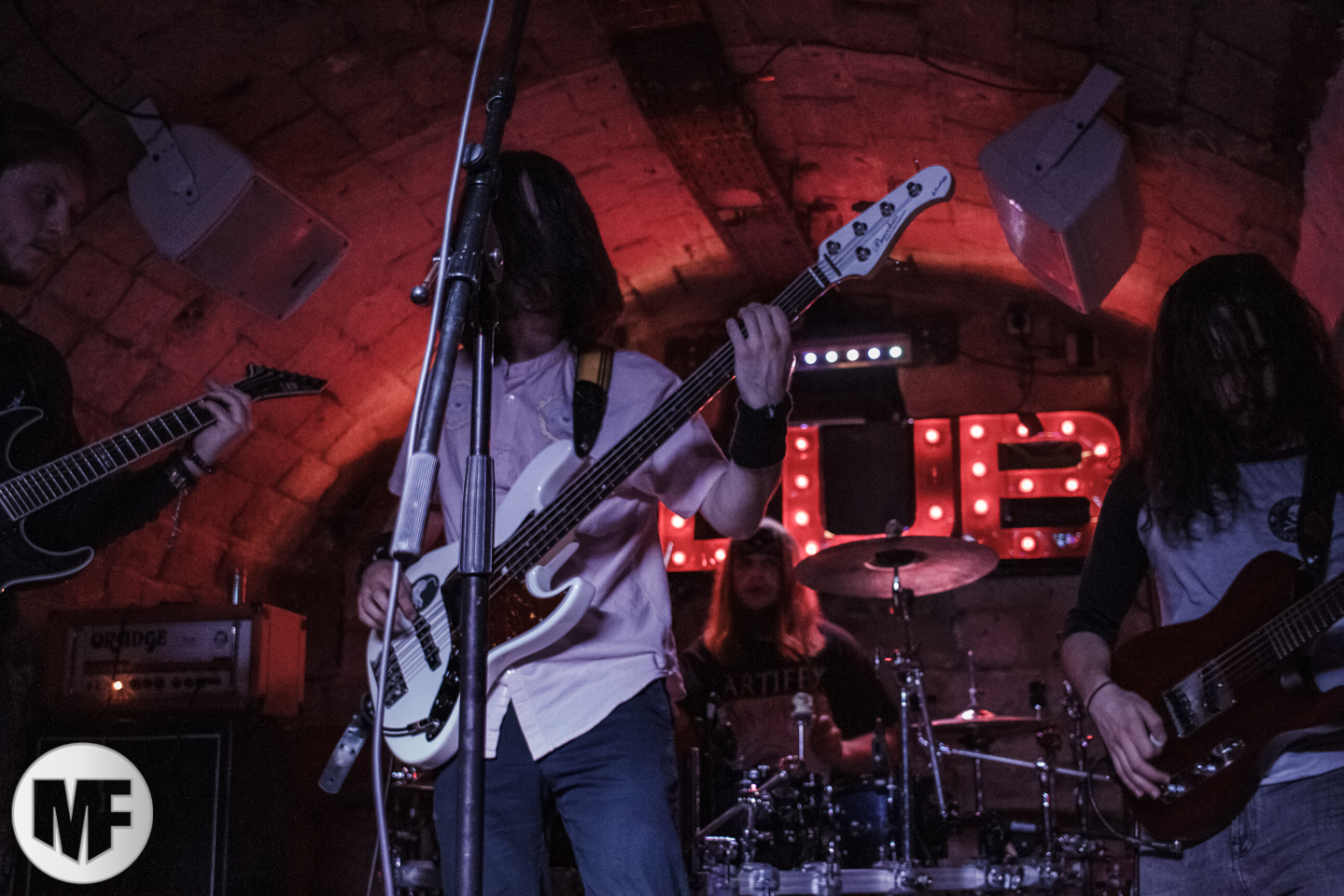 ENKARNIS interrompt le silence de la salle par une douce atmosphère planante et progressive, puis commence les riffs avec des growls relativement lourds. L’énergie du chanteur se fait ressentir dès la première chanson. Le jeu de batterie trouve parfaitement sa place avec les lignes de basses, surtout pendant les parties instrumentales qui, selon moi, peuvent devenir la marque de fabrique d’ENKARNIS. On peut dire qu’il y a des influences de GOJIRA dans l’écriture de certaines partitions. À noter des passages en taping, que ce soit pour la basse ou la guitare avec une très bonne maîtrise. Voilà une belle petite alliance entre old death metal avec le new death metal !