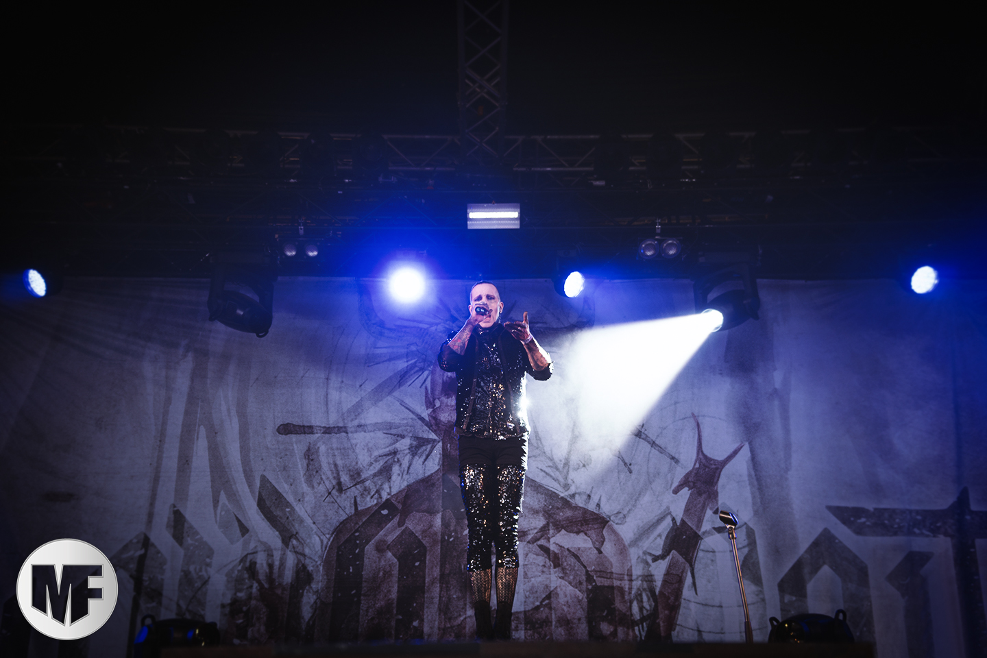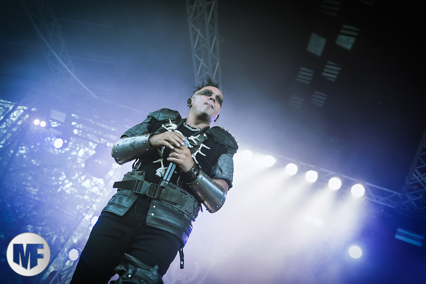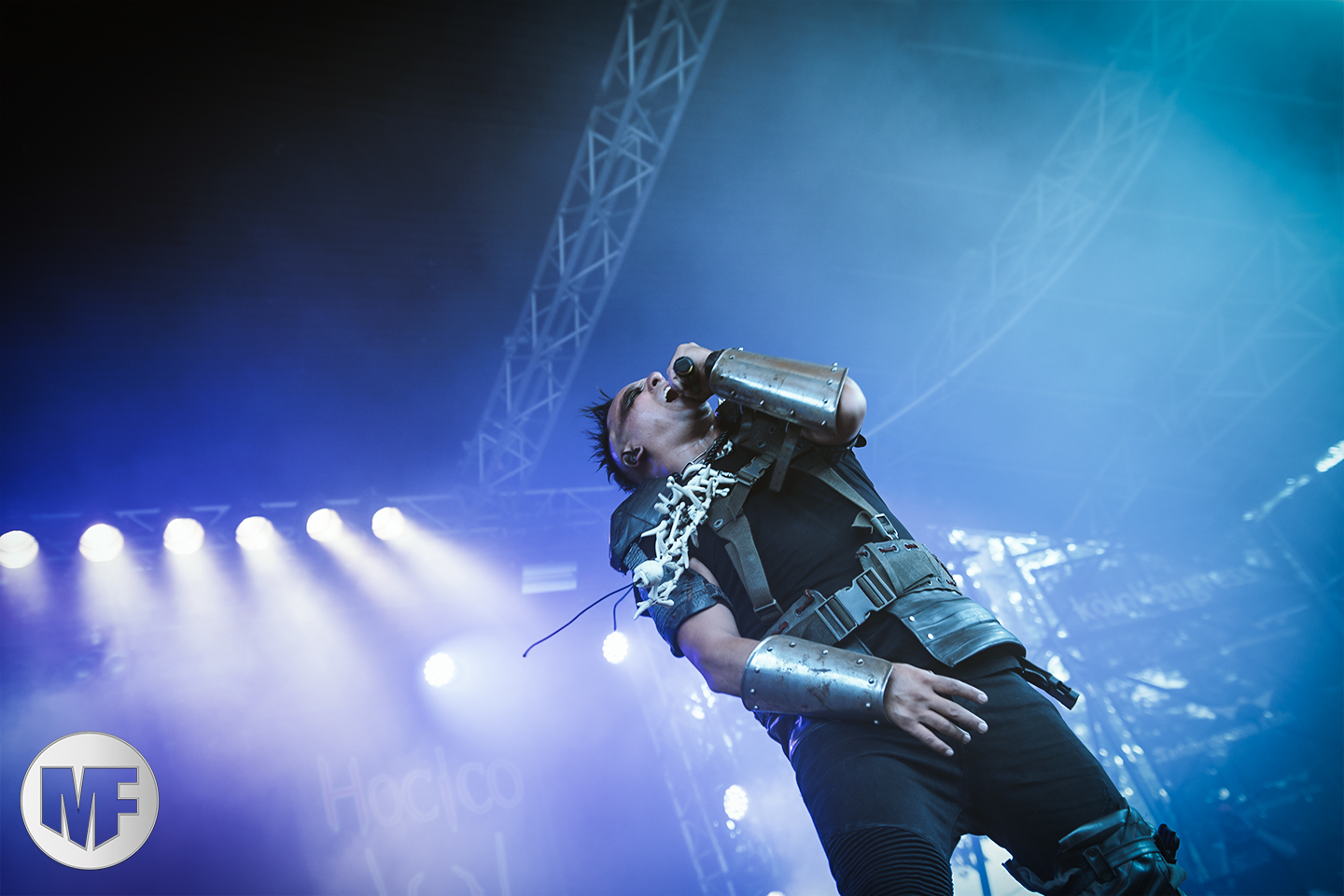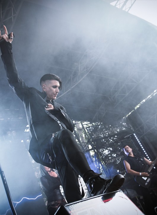 Petite déception pour le set de HOCICO où on ne retrouvera pas l’énergie pourtant légendaire de Erk Aircrag sur scène. Le son n’est pas clair du tout, le micro du chanteur, malgré son pied de micro constellé de têtes de morts plutôt flippant, semble manquer de puissance. Ce qui n’empêche pas le public de profiter de l’univers electro-dark très sombre aux beats marqués des Mexicains, habitués de l’Amphi. Rien à voir cependant avec la folie des concerts en France, même si UN slam vient perturber la relative quiétude de la fosse. De nombreux titres du dernier album, dont Dark Sunday et Psychonaut, alternent avec les anciens, dont Sex Sick, joyeusement repris par le public sur le refrain, Bite Me, ou encore Forgotten Tears.