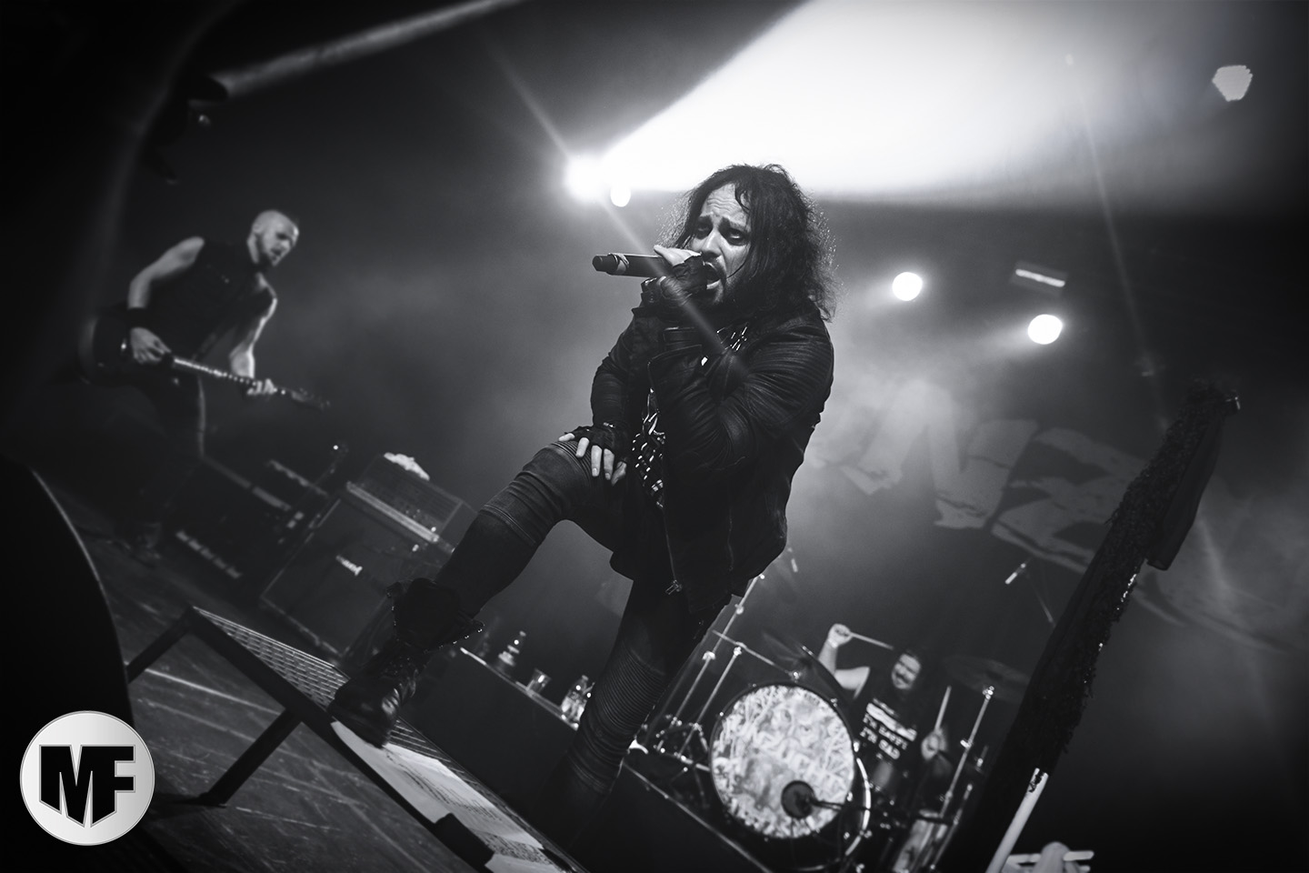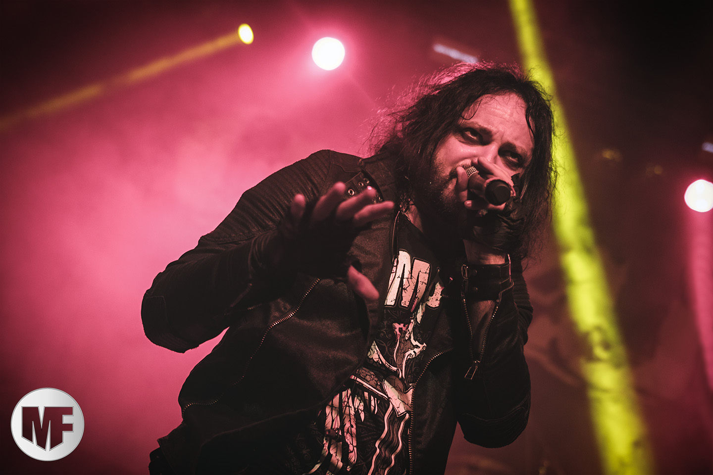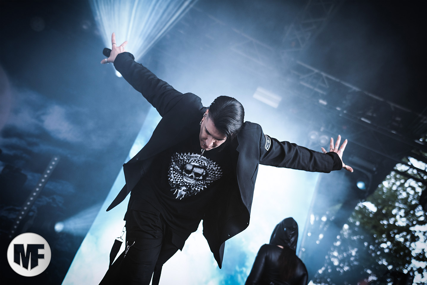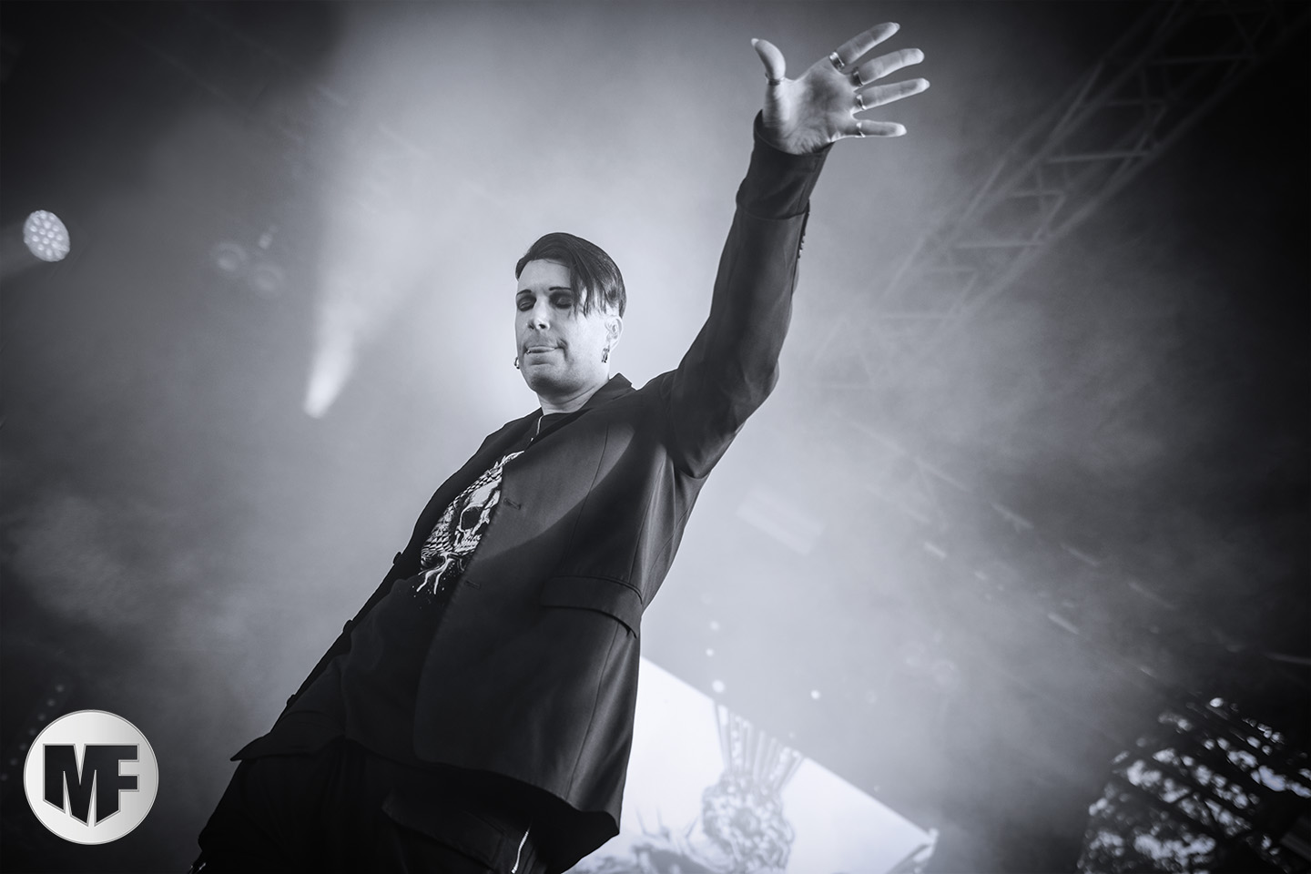 Petite déception pour le set de HOCICO où on ne retrouvera pas l’énergie pourtant légendaire de Erk Aircrag sur scène. Le son n’est pas clair du tout, le micro du chanteur, malgré son pied de micro constellé de têtes de morts plutôt flippant, semble manquer de puissance. Ce qui n’empêche pas le public de profiter de l’univers electro-dark très sombre aux beats marqués des Mexicains, habitués de l’Amphi. Rien à voir cependant avec la folie des concerts en France, même si UN slam vient perturber la relative quiétude de la fosse. De nombreux titres du dernier album, dont Dark Sunday et Psychonaut, alternent avec les anciens, dont Sex Sick, joyeusement repris par le public sur le refrain, Bite Me, ou encore Forgotten Tears.