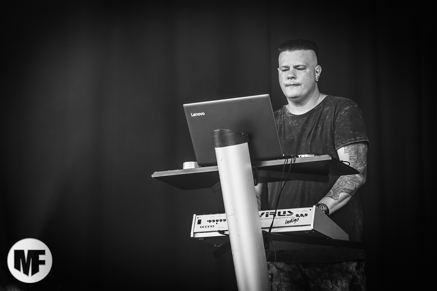 Le soleil revenu faire une courte apparition disparaît doucement dans le ciel. Les équipes techniques s’affairent désormais pour la prestation des têtes d’affiche du jour, NITZER EBB. Le groupe britannique, et non pas allemand, comme on le croit souvent, a trois bonnes décennies d’albums et de concerts à son actif. Les musiciens, dont le line-up a pas mal évolué au cours des années, participent à de nombreux projets aux côtés notamment de DEPECHE MODE ou DIE KRUPPS. De la techno rageuse des débuts en passant par l’EBM des années 2000 demeure une énergie contagieuse et des titres irrésistiblement dansants.