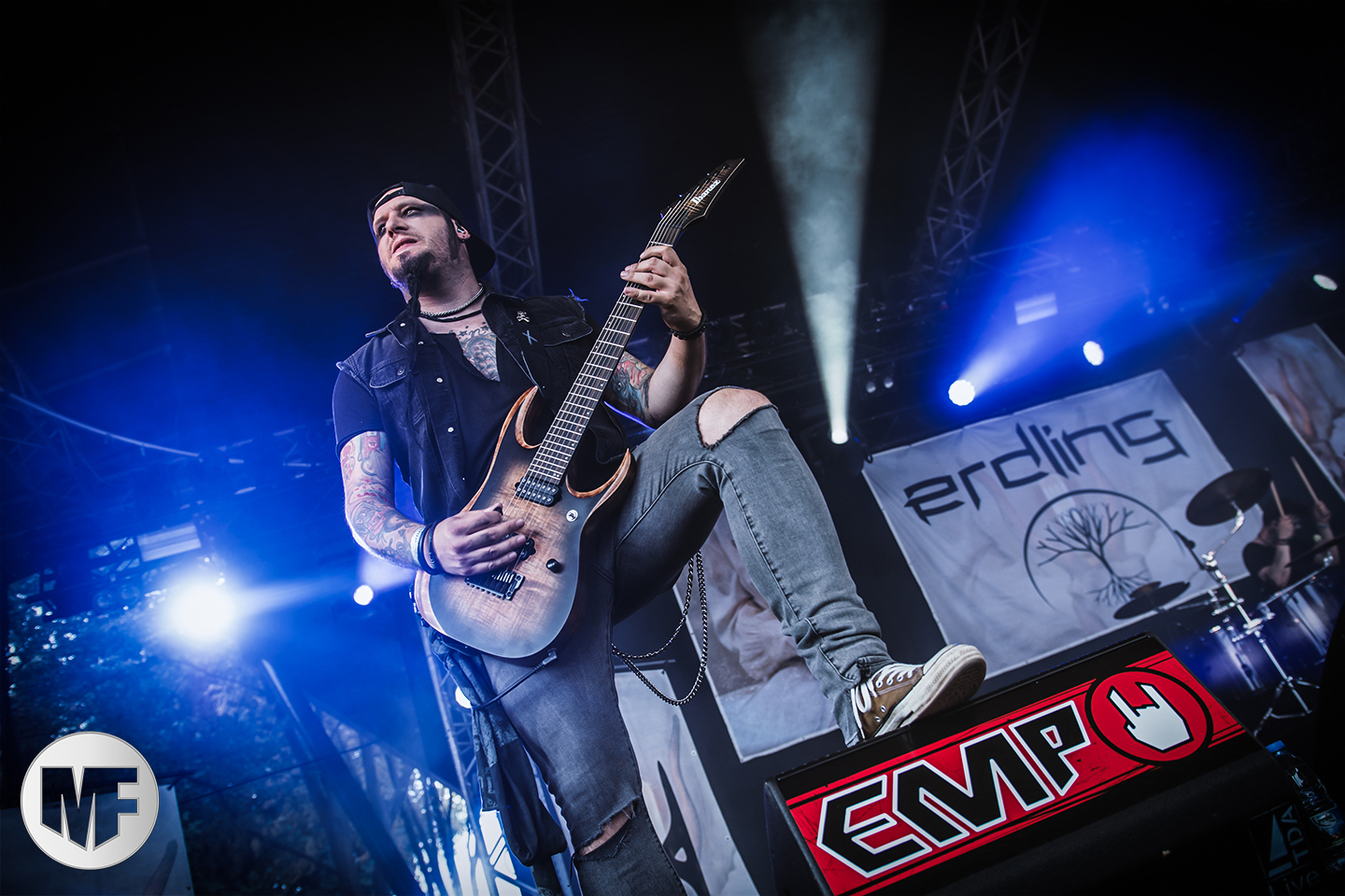Les décibels sont déjà au rendez-vous de bon matin et n’auront de cesse que de croître tout au long de la journée. D’ailleurs le groupe suivant, venu de Bavière, va vite faire entrer le festival dans le vif du sujet : ERDLING, malgré ses 4 ans d’existence, se taille déjà une jolie renommée sur la scène dark allemande. En première partie de nombreux groupes dont LORD OF THE LOST, et avec une tournée en headliner fin 2018 qui a rencontré un beau succès, les trois musiciens vont faire chavirer le cœur des festivaliers.