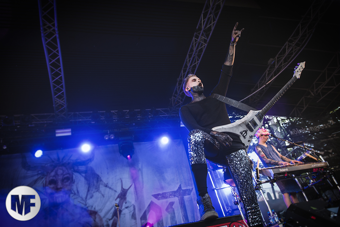 Le visuel est soigné, le make-up des musiciens donnent une touche de glam-rock au show. Après quelques titres du dernier album dont Loreley, retour aux anciens succès avec Prison, Six Feet Underground ou encore l’improbable Doomsday Disco, mélange de disco et metal particulièrement dansant. Le professionnalisme des Allemands saute aux yeux. C’est un show rodé avec une set-list variée et fédératrice à laquelle on a droit. La ferveur du public est à son comble, et ce n’est pas l’orage qui finit par s’abattre sur Cologne qui va calmer les ardeurs des fans de la première heure ! C’est donc trempés mais heureux que nous terminons le show avec La Bomba, aux rythmes latinos effrénés.