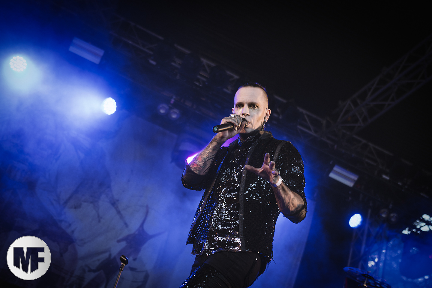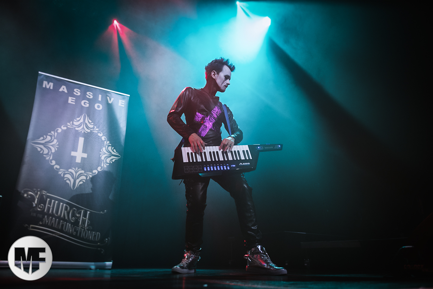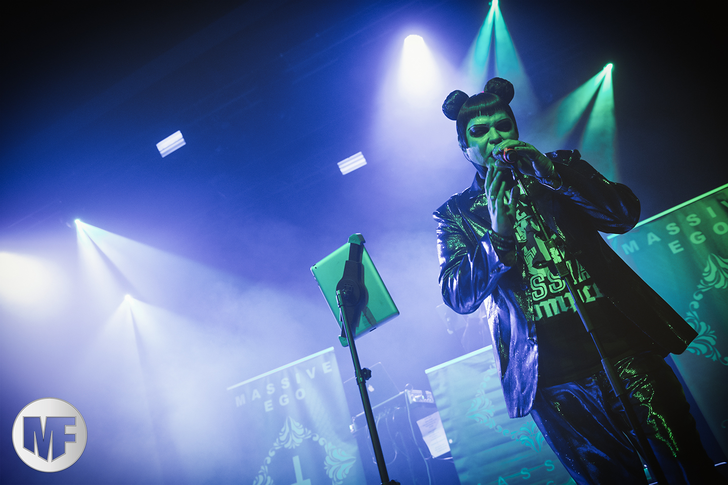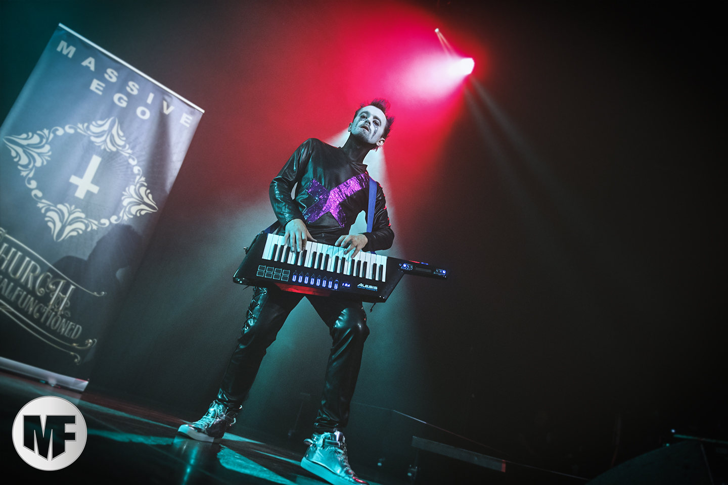 MASSIVE EGO a la réputation de proposer des shows très colorés, et ce sera bien le cas. La présence de Marc Massive sur scène vaut à elle seule le détour, et les photographes mitraillent sans relâche ses habits de lumière. Les inconditionnels sont là : il faut dire qu’en 20 ans le groupe a accumulé les succès, avec My Religion Is Dark, For The Blood In Your Veins, sans oublier I Idolize You et sur leur dernier album la cover de AND ONE Military Fashion Show.