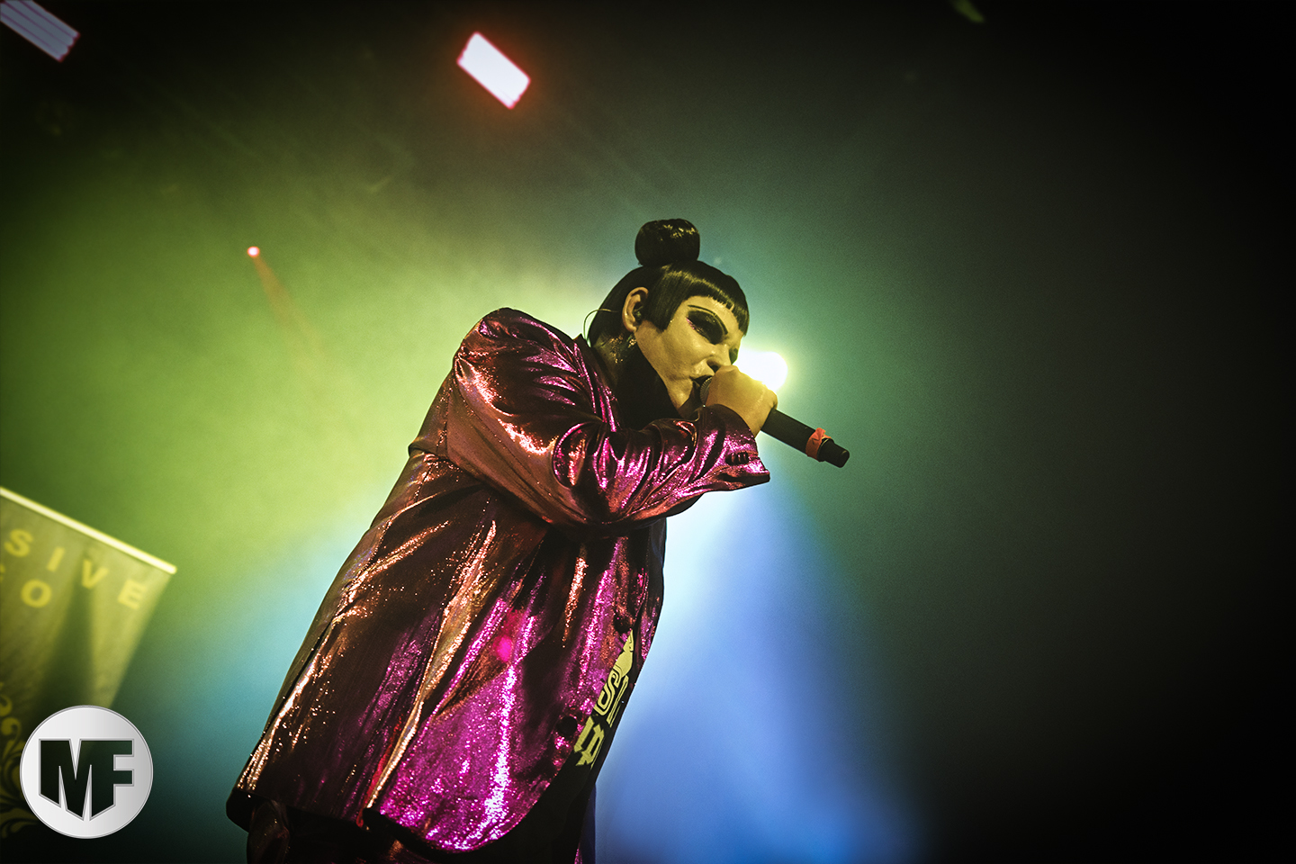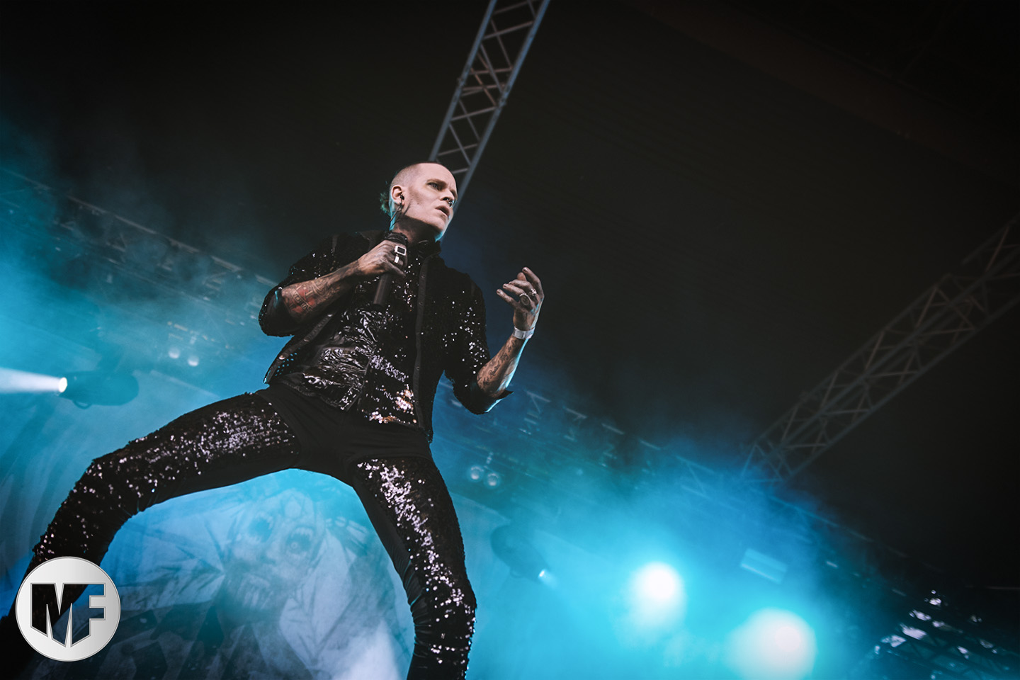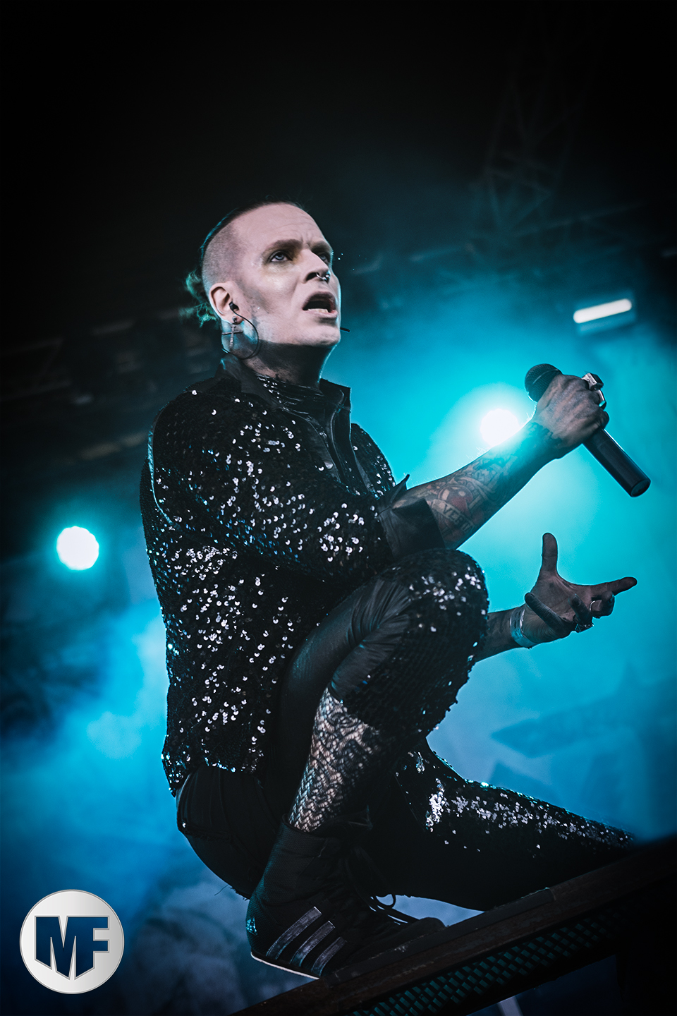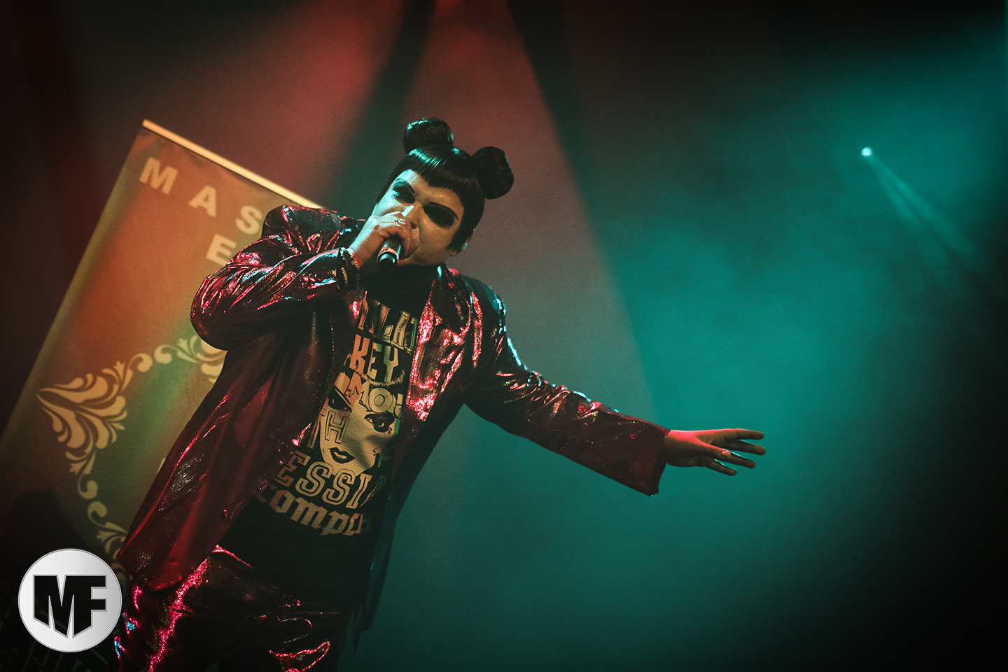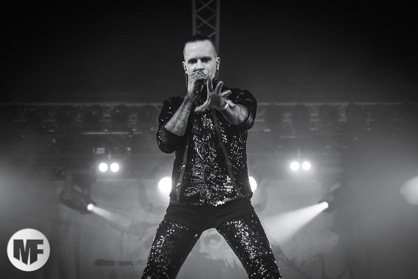 MASSIVE EGO a la réputation de proposer des shows très colorés, et ce sera bien le cas. La présence de Marc Massive sur scène vaut à elle seule le détour, et les photographes mitraillent sans relâche ses habits de lumière. Les inconditionnels sont là : il faut dire qu’en 20 ans le groupe a accumulé les succès, avec My Religion Is Dark, For The Blood In Your Veins, sans oublier I Idolize You et sur leur dernier album la cover de AND ONE Military Fashion Show.