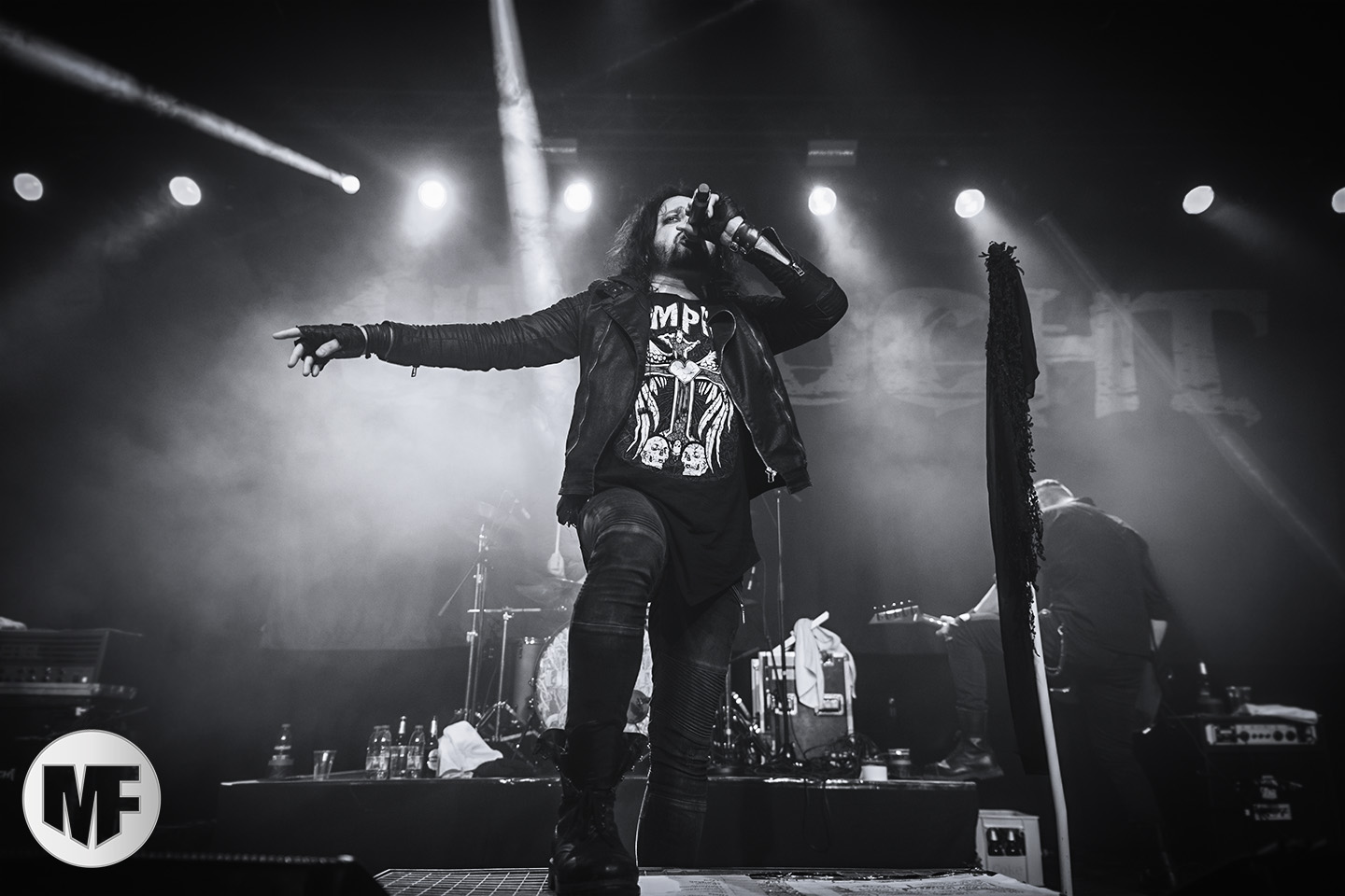 Le set passe bien trop vite, on y retrouve les premiers titres du combo comme Unzucht, Deine Zeit läuft ab, ou l’incontournable Engel der Vernichtung qui fait chanter d’une seule voix tout le public. La voix du frontman se fait plus sensible et mélodieuse pour Nela, tandis qu’une frénésie de lumières blanches accompagne le tempo infernal de Kettenhund. Daniel Schulz fait son petit tour de crowsurfing comme à son habitude. Le sourire ne l’a pas quitté depuis le début du set. La communion avec la salle est totale, UNZUCHT est vraiment l’un des groupes où l’on ressent un véritable amour du public pour les musiciens.