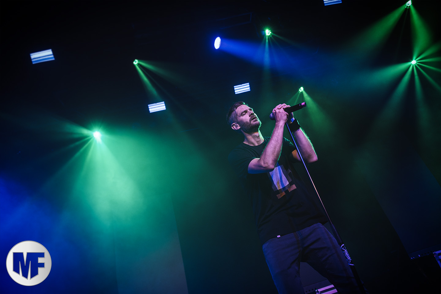 A peine le temps de récupérer de nos émotions que les Suisses de THE BEAUTY OF GEMINA se présentent devant le public. A priori on pourrait penser que l’ambiance va être beaucoup plus sereine, et bien il n’en sera rien ! Leur rock électronique faisait parfois penser à du Placebo, bien balancé et rythmé, servi par la voix impeccable du chanteur Michael Sele à la chevelure blanche caractéristique va continuer à enflammer les Tanzbrunnen. Les musiciens ne sont pas très démonstratifs sur scène mais ils enchaînent les morceaux avec un bel enthousiasme. Leurs mélodies sont une invitation au voyage : de This time à Hunters, le temps semble glisser sur le Festival. C’est une atmosphère complètement différente mais qui se prête tout à fait à ce début d’après-midi ensoleillé. Il est maintenant l’heure de vérifier si un jeune groupe allemand que nous avions découvert il y a quelque temps et dont c’est la toute première prestation à l’Amphi va tenir ses promesses. A en juger par la foule qui se presse dans le Theater, leur réputation est déjà bien établie. Fondé en 2016 par le guitariste de STAHLMANN, Frank Herzig, SCHATTENMANN a assuré les premières parties de groupes tels que MEGAHERZ ou FEUERSCHWANZ. De quoi se constituer un beau réservoir de fans ! Dès le premier titre on sait qu’on ne sera pas déçu : on retrouve ici leurs effets fluo verts sur le visage et sur le corps ainsi que sur les instruments. Là encore la voix est irréprochable, sur des rythmiques qui louchent du côté NDH avec un côté electro/pop parfois. Generation Sex, Amok, ou encore Licht an, autant de titres qui recueillent les acclamations du public. Energie, générosité, talent : juste trois mots pour définir les jeunes Allemands. Le set file comme l’éclair, on sent bien que le public n’est pas prêt à les laisser partir… Et pourtant ! Dans une salle désormais pleine comme un œuf, tout le monde attend l’arrivée de COMA ALLIANCE. Side project de Torben Wendt (DIORAMA) et Adrian Hates (DIARY OF DREAMS ), le groupe livre ici sa toute première prestation live dans un festival. Malgré notre impatience, nous nous inquiétons du niveau sonore, bien trop élevé comme la veille. La salle est plus conçue pour le clubbing que pour les concerts, çà ne fait aucun doute. Espérons que çà ne gâchera pas le plaisir de découvrir ces deux complices de toujours dans leur projet commun. Difficile de décrire la vague d’excitation qui soulève la foule à l’entrée des deux hommes sur scène, mais on est brusquement confronté à la résistance des barrières ! Tout au long du show les deux artistes accompagnés par un troisième musicien à la guitare, alterneront chant, guitare (pour Adrian Hates) et clavier (pour Torben Wendt). Ils sont tout à leur bonheur d’être ensemble devant leur public, et ce plaisir est communicatif. La voix plus grave du chanteur de Diary répond à l’énergie débordante de son comparse, véritable Zébulon qui saute partout sur scène. Les lumières très variées suivent les déplacements des deux hommes, le volume sonore est supportable bien que les basses prennent beaucoup de place. Pour le coup on ne maîtrise pas trop des titres interprétés mais il nous semble reconnaître CA2 , parfaite illustration de la complémentarité des deux voix, et puis Her Liquid Arms sur lequel Torben Wendt au micro fait le show, plus groovy que jamais. Par contre pas de doute pour Butterfly Dance, le public et les musiciens en ont presque les larmes aux yeux, tant ce titre de DIARY OF DREAMS est devenu un symbole. Le set s’achève dans un tonnerre d’applaudissements qui se prolongent longuement : les musiciens s’étreignent, l’émotion est à son comble d’avoir reçu un tel accueil.
