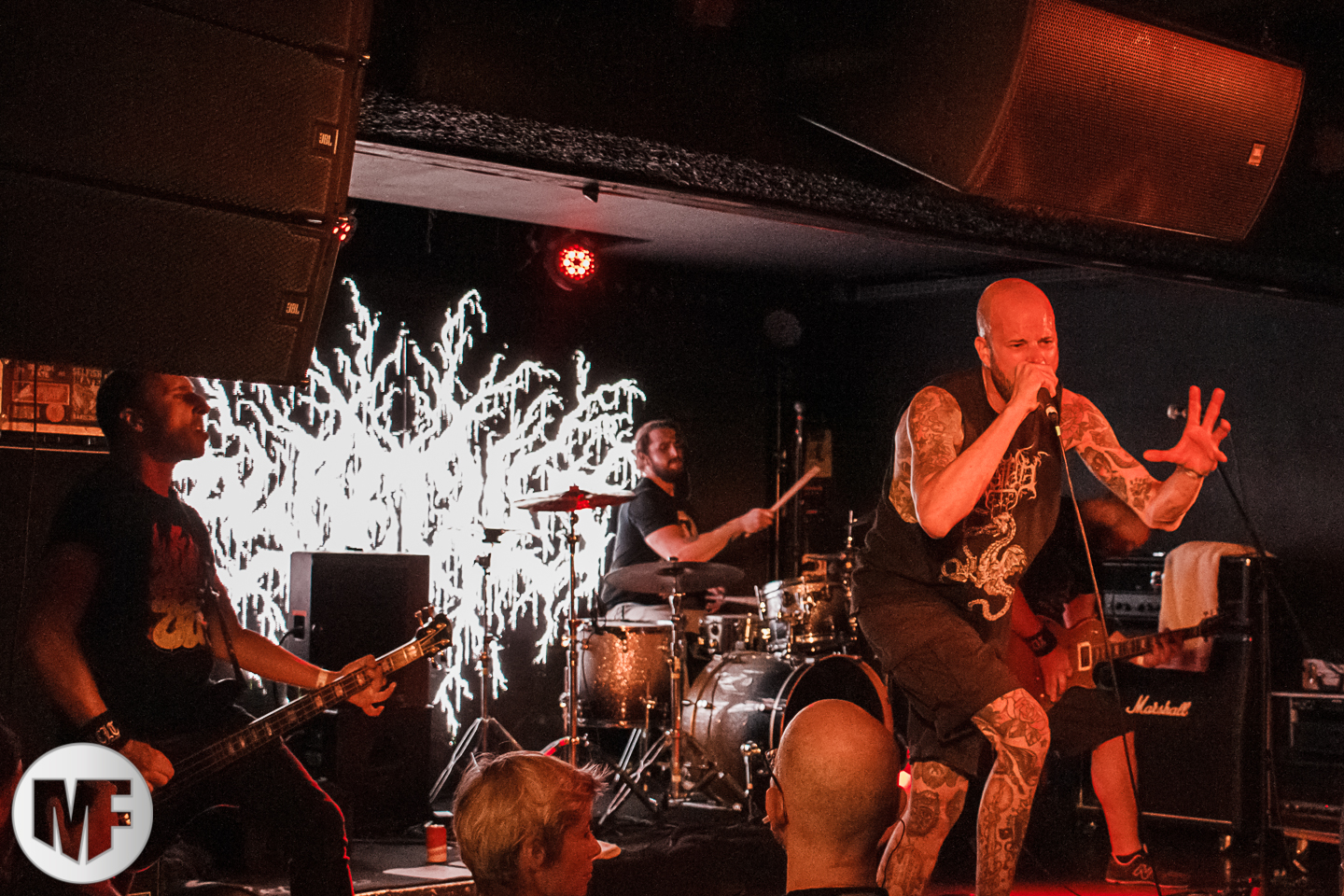 Tout droit venu de Strasbourg, le quintet PIEDBOUCHE vient fouler les planches de la scène parisienne pour la première fois et sont chaleureusement accueillis. C’est avec énergie que le set démarre, tel un coup dans la mâchoire, avec des riffs sauce old-school, mais remis au goût du jour, ainsi que des breakdowns bien exécutés.