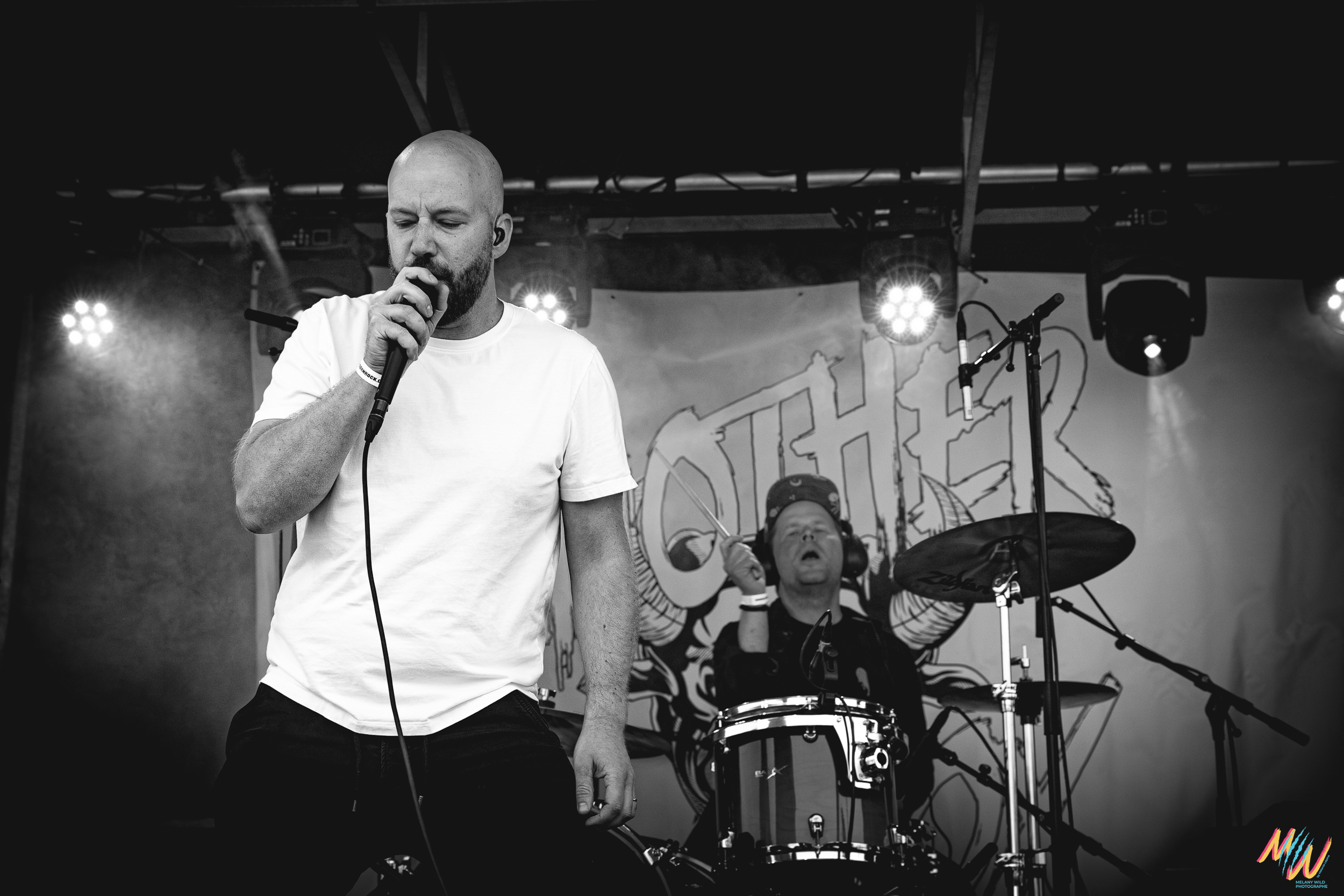 Il est 19h et les Suisses d’Another OX débutent sur la petite scène. Un démarrage fort en émotions, car ce concert est leur tout dernier. Les musiciens offrent même le reste de leur stock de t-shirts, CDs et vinyles.