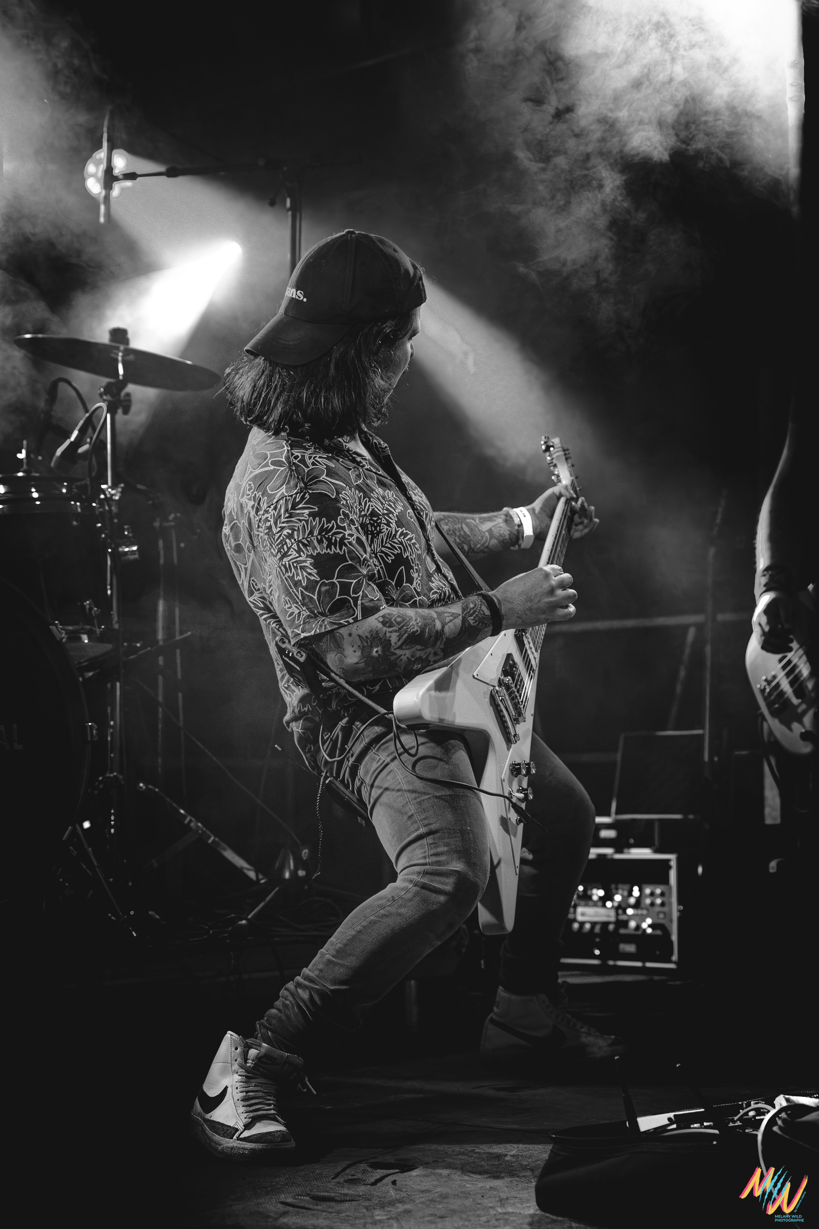 Leur nouvel album, Glory Or Nothing, sorti en mars, est bien mis à l’honneur avec cinq morceaux joués ce soir. On a aussi droit à « Factory », single de 2021, quelques titres de She’s On Her Period (2018). Nous finirons avec deux titres de l’album Rockin’ Hell (2016). L’’ambiance monte encore d’un cran quand Anthony, le guitariste, descend dans la fosse pour un solo, avant de grimper sur la structure de la scène, rappelant un certain Joel O'Keeffe. Un groupe qui sait enflammer la scène !