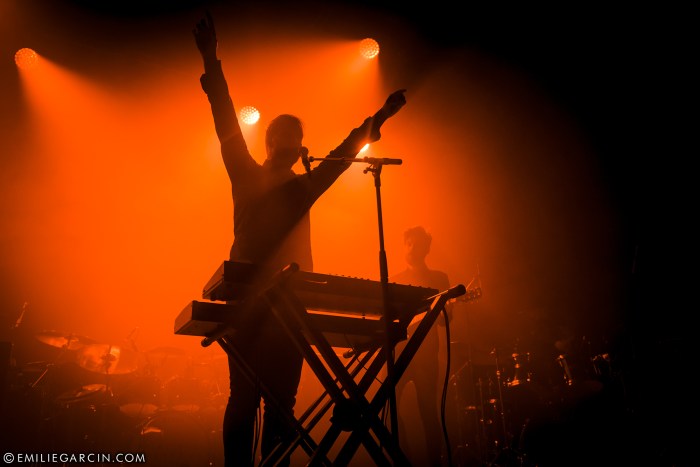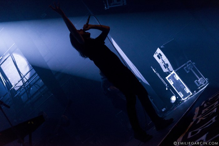 L’identité austère du groupe, relativement statique et peu loquace, est accentuée par une absence des spots frontaux et une bonne quantité de fumée, mettant ainsi en valeur les silhouettes des musiciens.