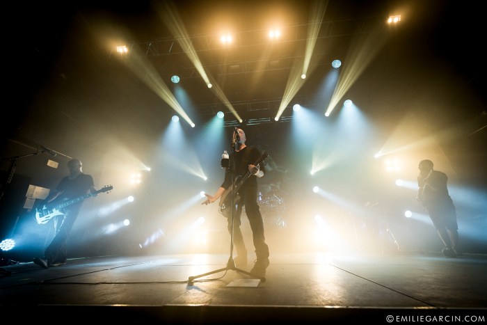 Devenue une admiratrice inconditionnelle de LEPROUS il y a moins d’un an de cela, c’était avec impatience que j’attendais de voir le groupe en action. Bien sûr, les trente-cinq minutes de leur set passent à une allure folle. Le groupe, acclamé dès leur apparition, s’approprie la scène sur une musique atmosphérique sombre, avant que retentisse Foe, seul titre issu de « Coal » (2013). S’il propose un tempo cognant, en plus d’un refrain transcendant, la composition a l’avantage de révéler dès les premières secondes la puissance et la beauté de la voix d’Einar Solberg, également claviériste et compositeur principal du groupe. Qui prétendra être resté de marbre à l’écoute de ce charismatique personnage, en particulier ceux qui découvrent à peine les Norvégiens ce soir ? Aussi, nous avons la chance de bénéficier d’un son limpide, nous permettant de savourer sa performance vocale dans les meilleures conditions.