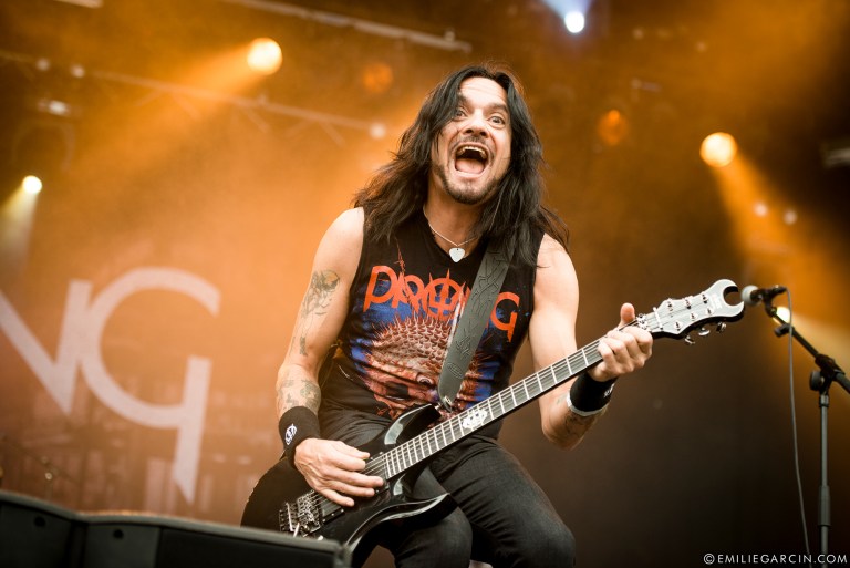 Prévus au départ pour une heure de concert, Testament fait les frais de soucis techniques : ils voient ainsi leur set retardé et réduit à 30 minutes seulement… Le backdrop est du plus bel effet, et Chuck Billy au chant ne cache pas son enthousiasme. On ne peut s’empêcher de remarquer qu’il se plait aussi à effectuer quelques mouvements de « air guitar » avec son micro portable ! Testament remporte la palme du nombre de passages au Dynamo, puisqu’il s’agira cette année de leur 5e fois. Mentionnons également le fait qu’ils aient enregistré leur tout premier album live en 1987, lors de leur toute première visite ici… Autant dire que les Américains sont ici chez eux, et l’audience le leur rend bien !
