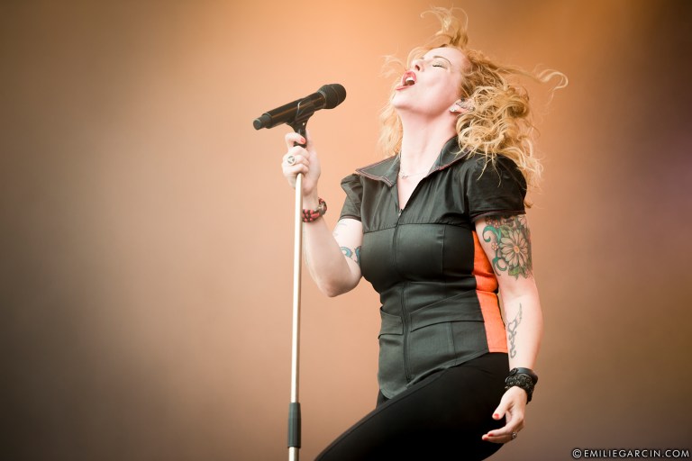 Si le premier groupe souffrait quelque peu de l’horaire qui lui avait été attribué, il n’en est rien pour VUUR, qui attire en un clin d’œil une foule dense, tandis que les musiciens commencent à s’installer. Il faut dire que la chanteuse de ce tout nouveau groupe n’est autre que la grande Anneke Van Giersbergen, qu’on ne présente plus, et pour qui le Dynamo est loin d’être inconnu, puisqu’elle a pu y participer en 1996 et 1999 avec les excellents The Gathering. En outre, la talentueuse artiste demeure une grande favorite des metalleux, que ce soit sur sa terre natale ou ailleurs dans le monde !