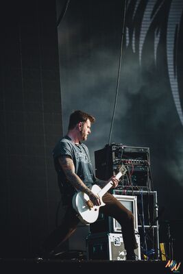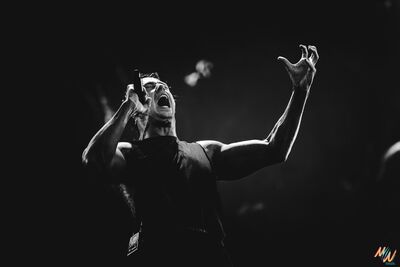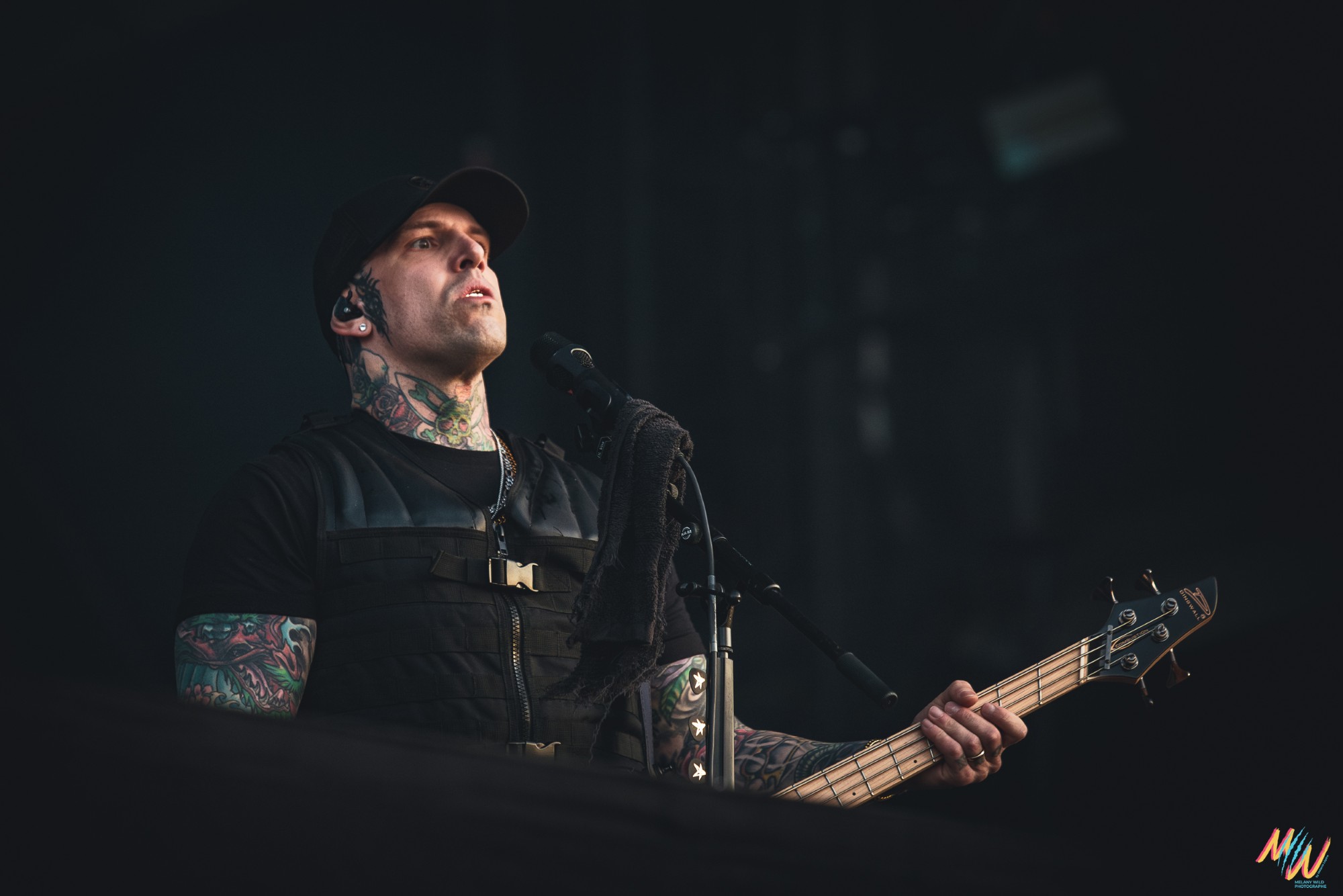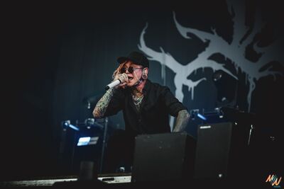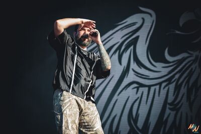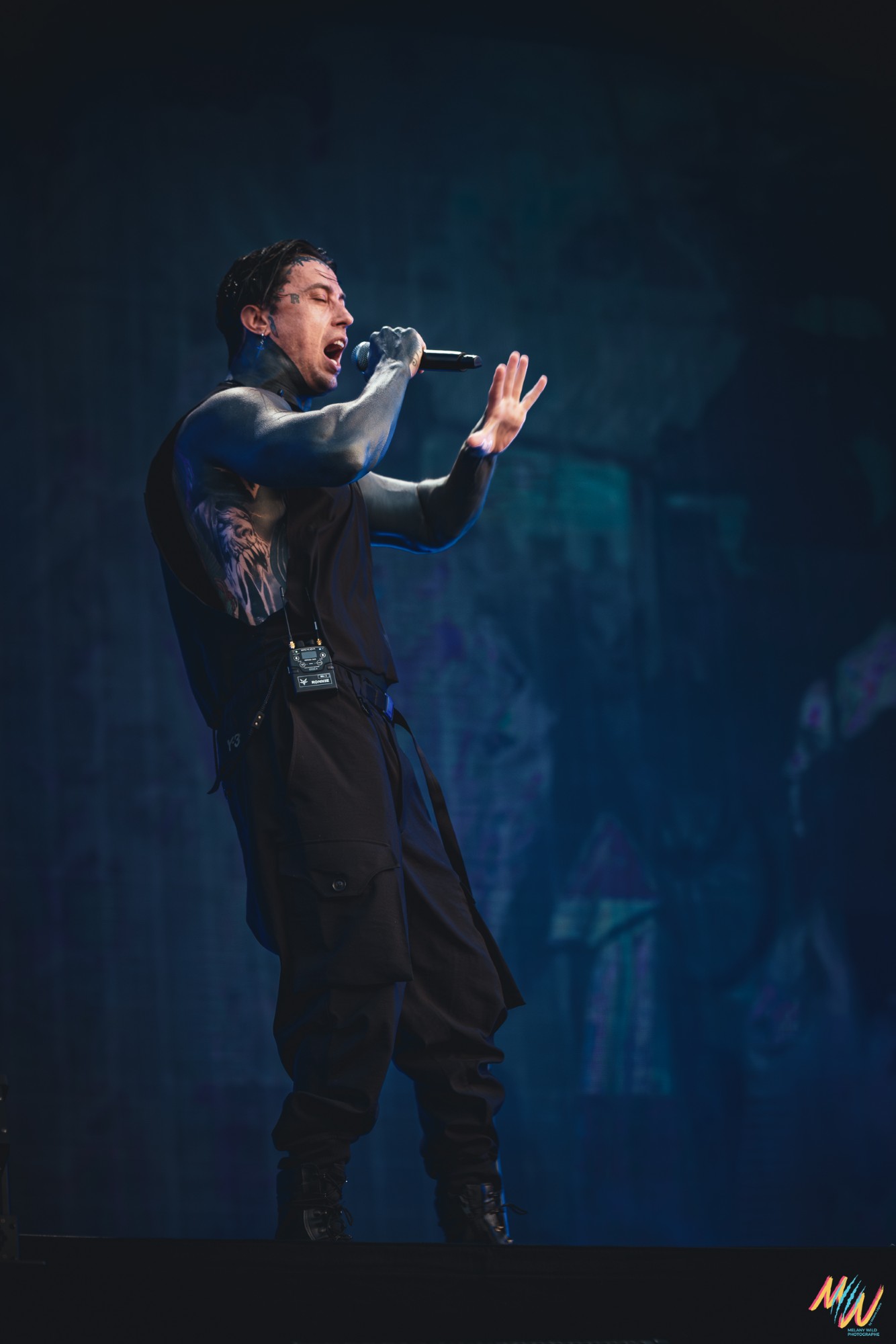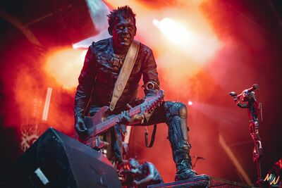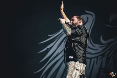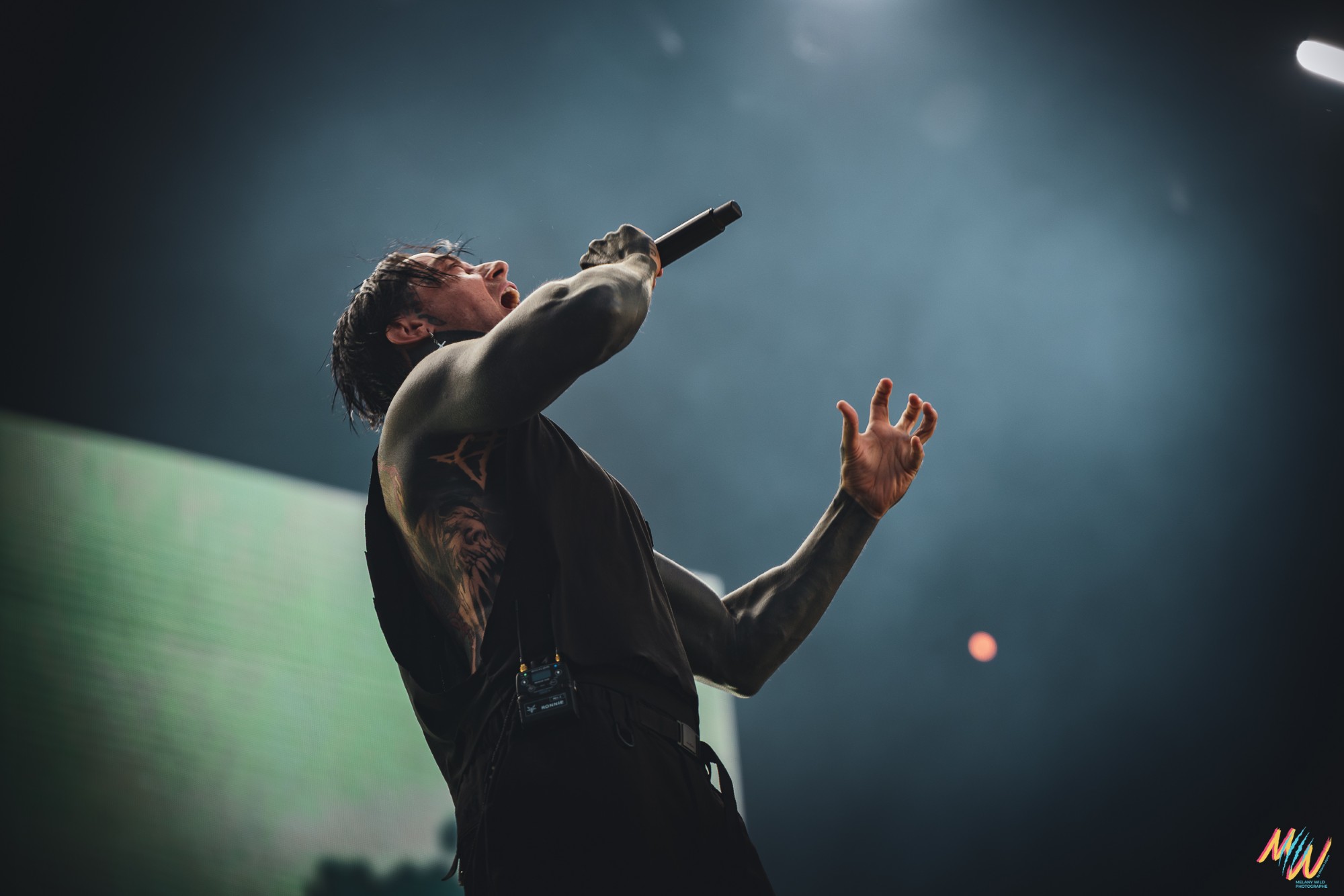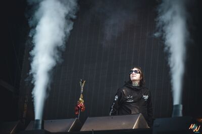 Il est maintenant l'heure pour le groupe phénomène qui remplit des salles à tour de bras et fait un carton plein en ce moment : Falling in Reverse. J’avoue être totalement passé à côté jusqu'à il y a peu et suis donc curieux de voir ce que ça donne. Autant le dire tout de suite, ce n'est pas spécialement pour moi. Quoiqu'il en soit, on peut leur reconnaître d'offrir un show digne de leur notoriété. Il y a certes la pyrotechnie qui fonctionne toujours bien, mais aussi Ronnie Radke, un frontman charismatique, tout en tatouage, qui en appelle régulièrement au public et sait comment amener chaque prochain morceau. C'est de la grosse machine avec beaucoup de vidéo en fond pour parfaire le tableau. À noter également le petit plus de jouer un morceau depuis les backstages, à savoir : "La Vie en Rose", d'Édith Piaf (!) et on a là un show qui se suit malgré tout sans déplaisir.
