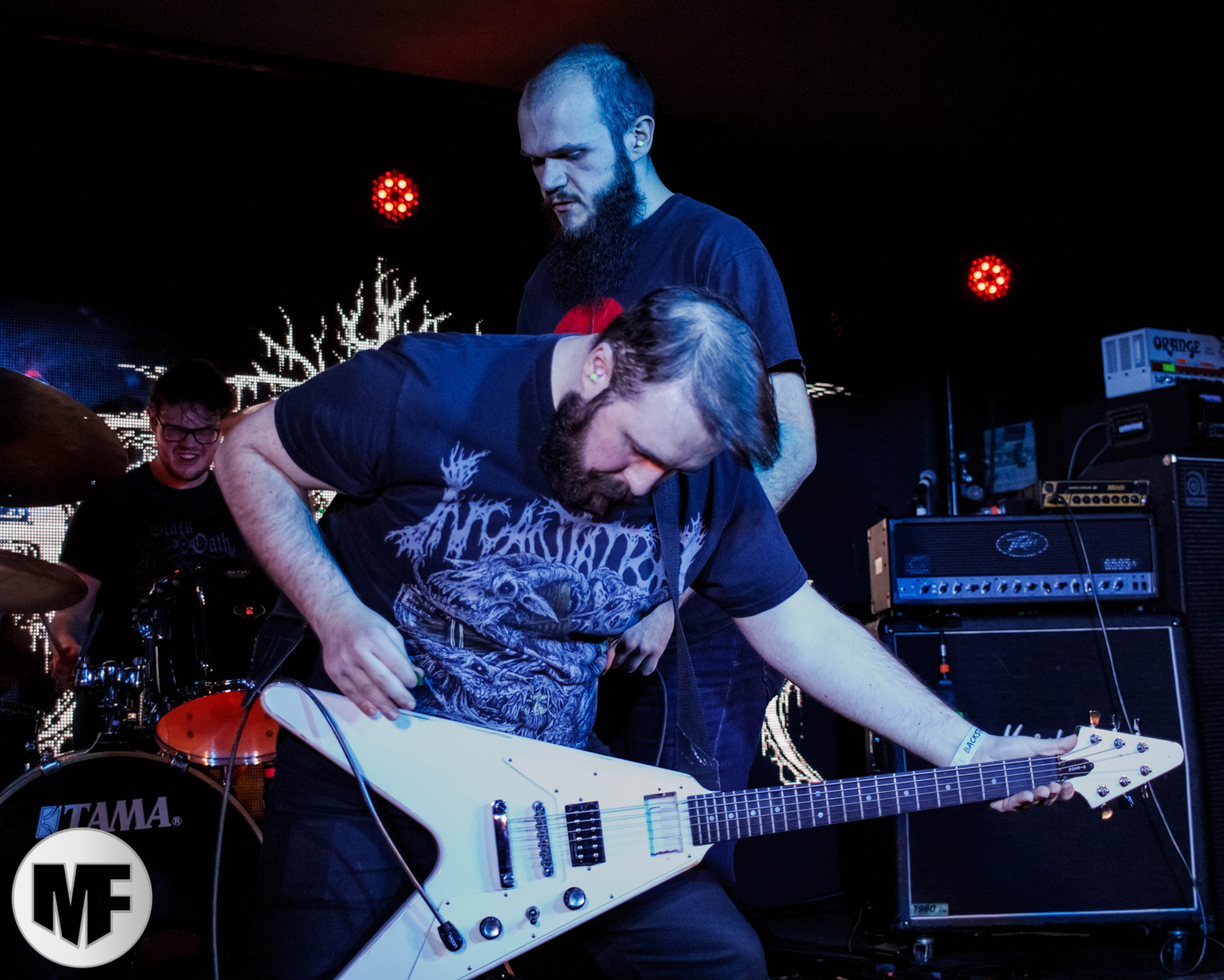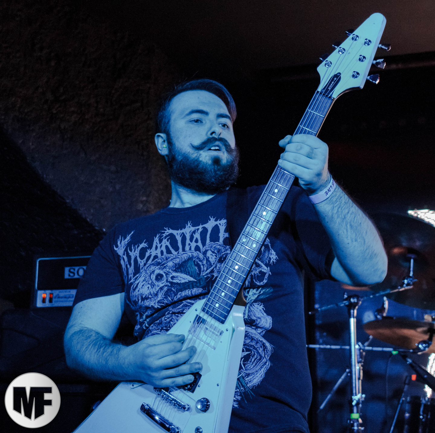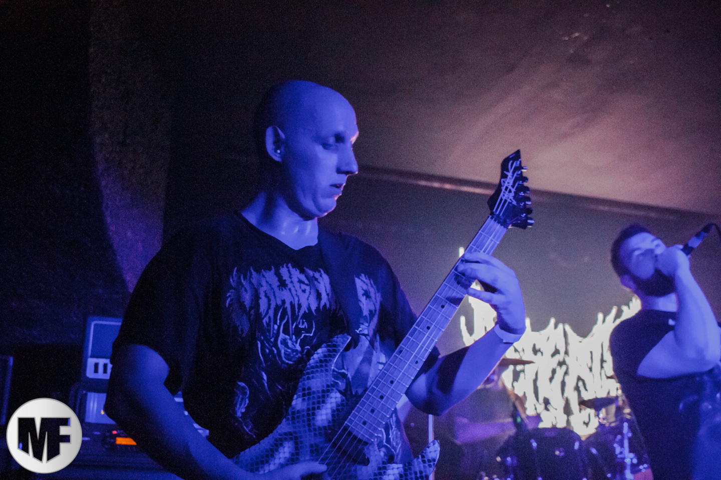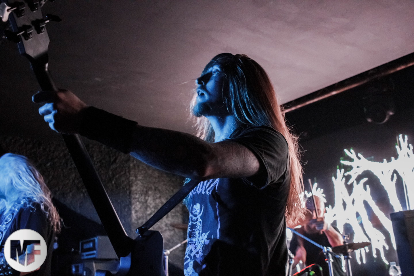 Aussitôt arrivés, ces chers messieurs galvanisent le public de leur douce mélopée. La rythmique déchainée de la batterie, mêlée aux vibrations de la basse, à la violence de la guitare et à la puissance du chant, font frémir les écoutilles ! L’harmonie entre old et new death metal a pu en ravir plus d’un, et c’est visiblement ce que SKINNED maitrise le plus avec un jeu de guitare très précis. Bref, on sent qu’ils ne sont pas là pour prendre une tasse de thé de manière raffinée, mais plutôt pour déverser un tsunami de parpaings !