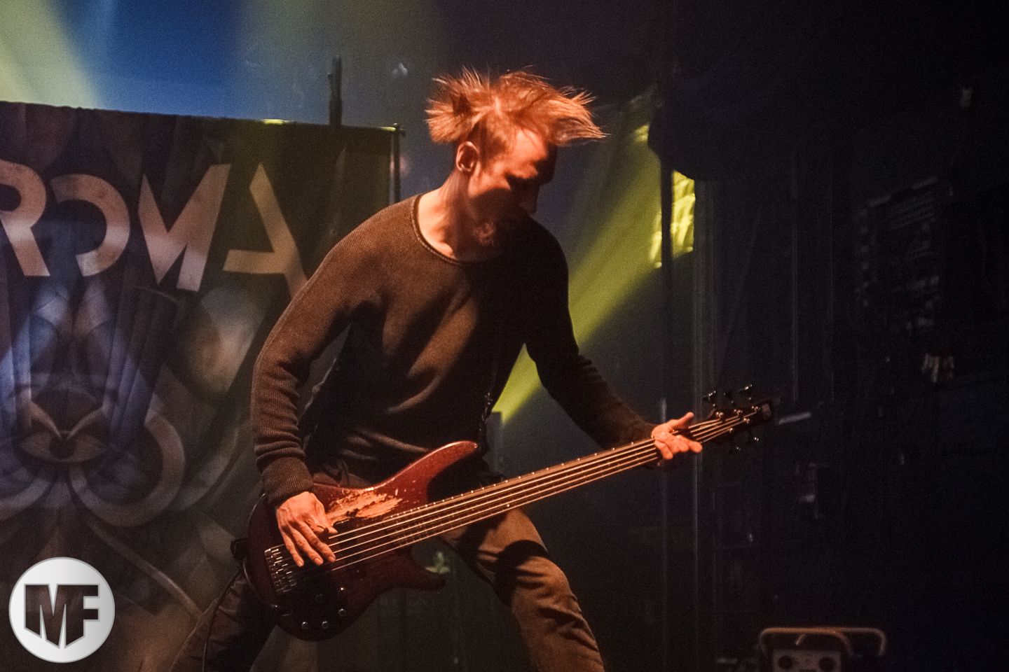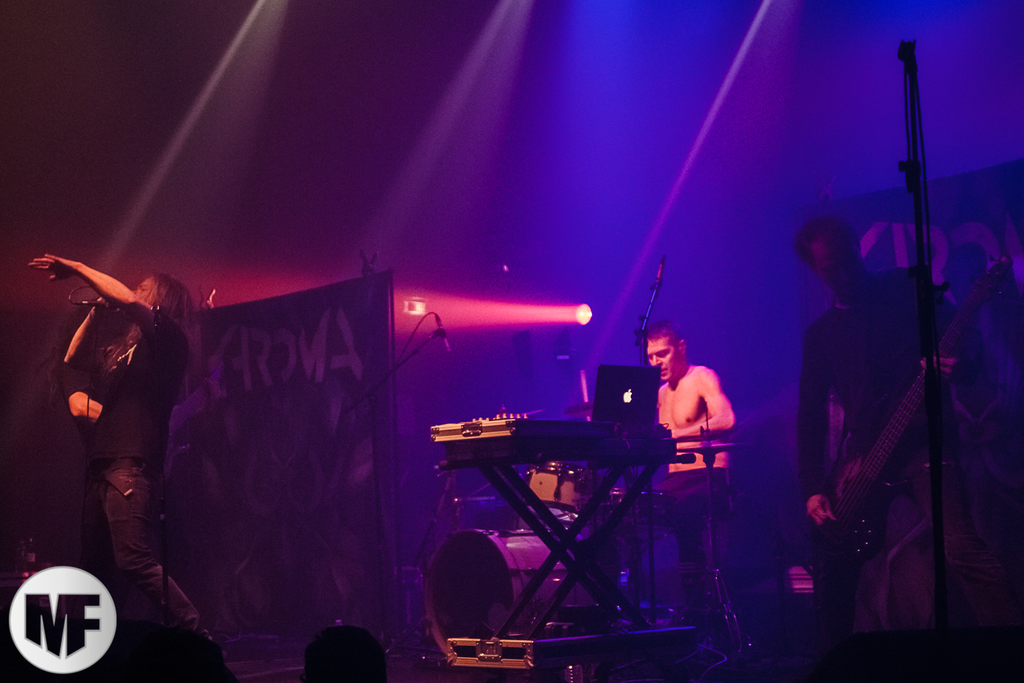 KHROMA fait son entrée et là, on change de monde : le lightshow est moins visuel et le set-up du groupe prend plus de place sur scène. Si les membres de KHROMA ne sautent pas dans tous les sens comme le groupe précédent, ils montent d’un cran niveau complexité : ils jouent avec générosité et se plient la colonne vertébrale sous le poids de leurs partitions !