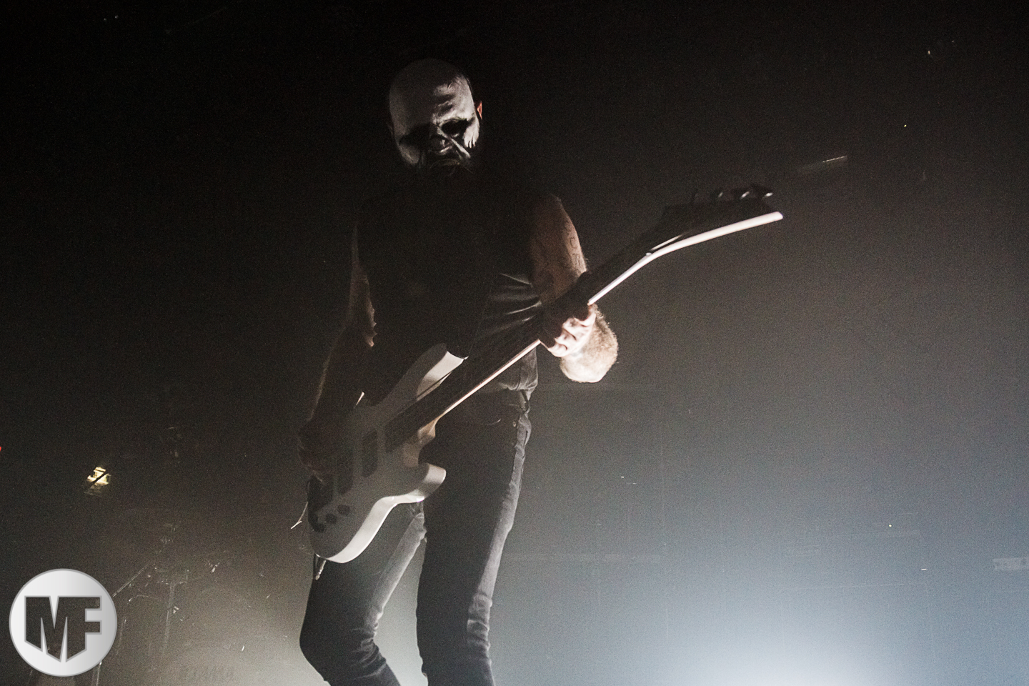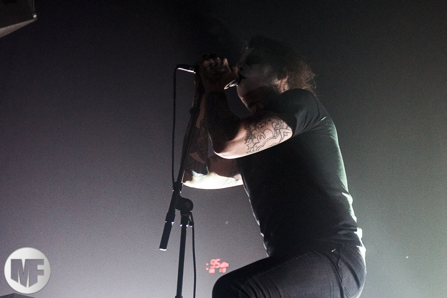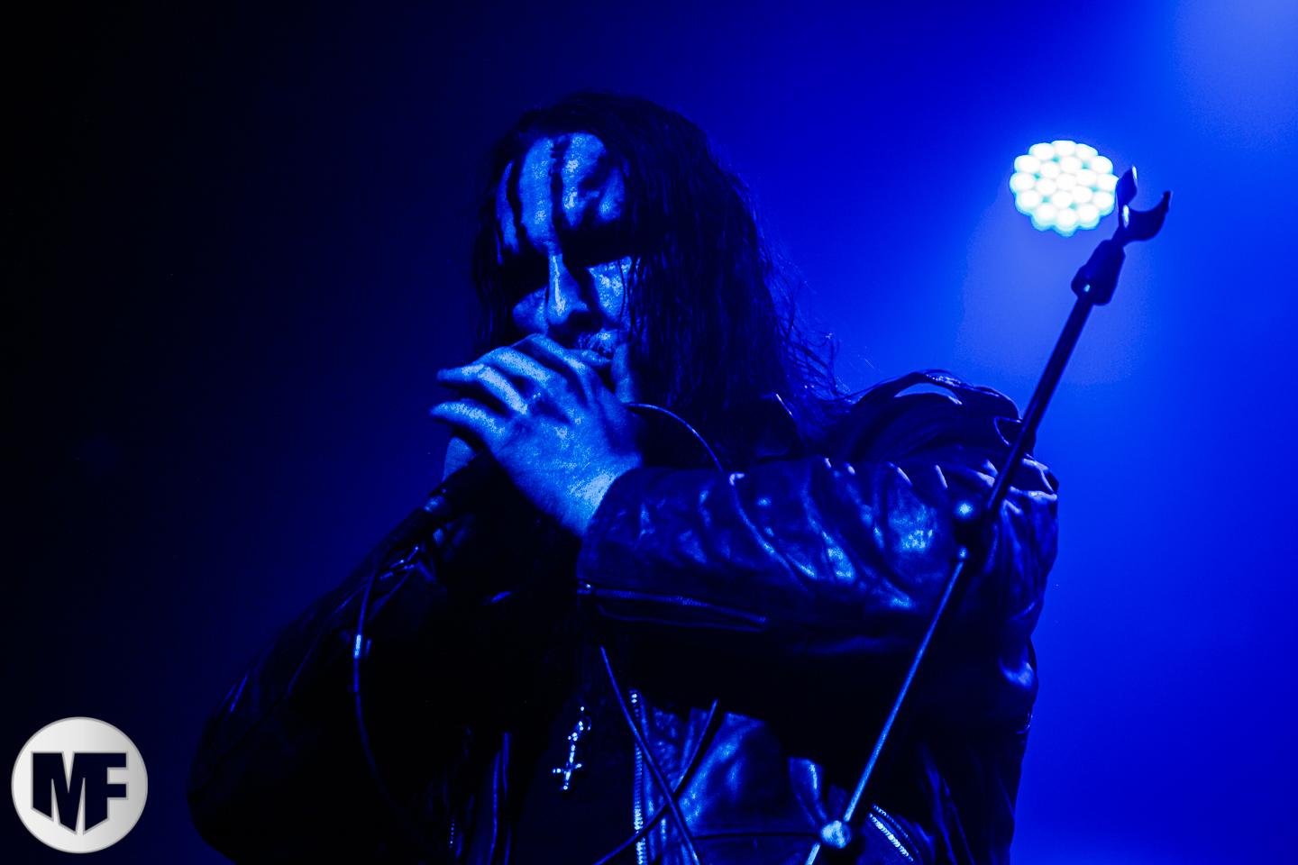 Au fur et à mesure, le chanteur laisse tomber sa tenue et son masque pour arborer un crucifix fait d’ossements. Contrairement au groupe précédent, on sent que le chant est quelque peu saturé en effets sonores, ce qui est dommage, car l’esprit initial même de MAYHEM est de ne pas répondre à certains critères actuels dans l’industrie de la musique.