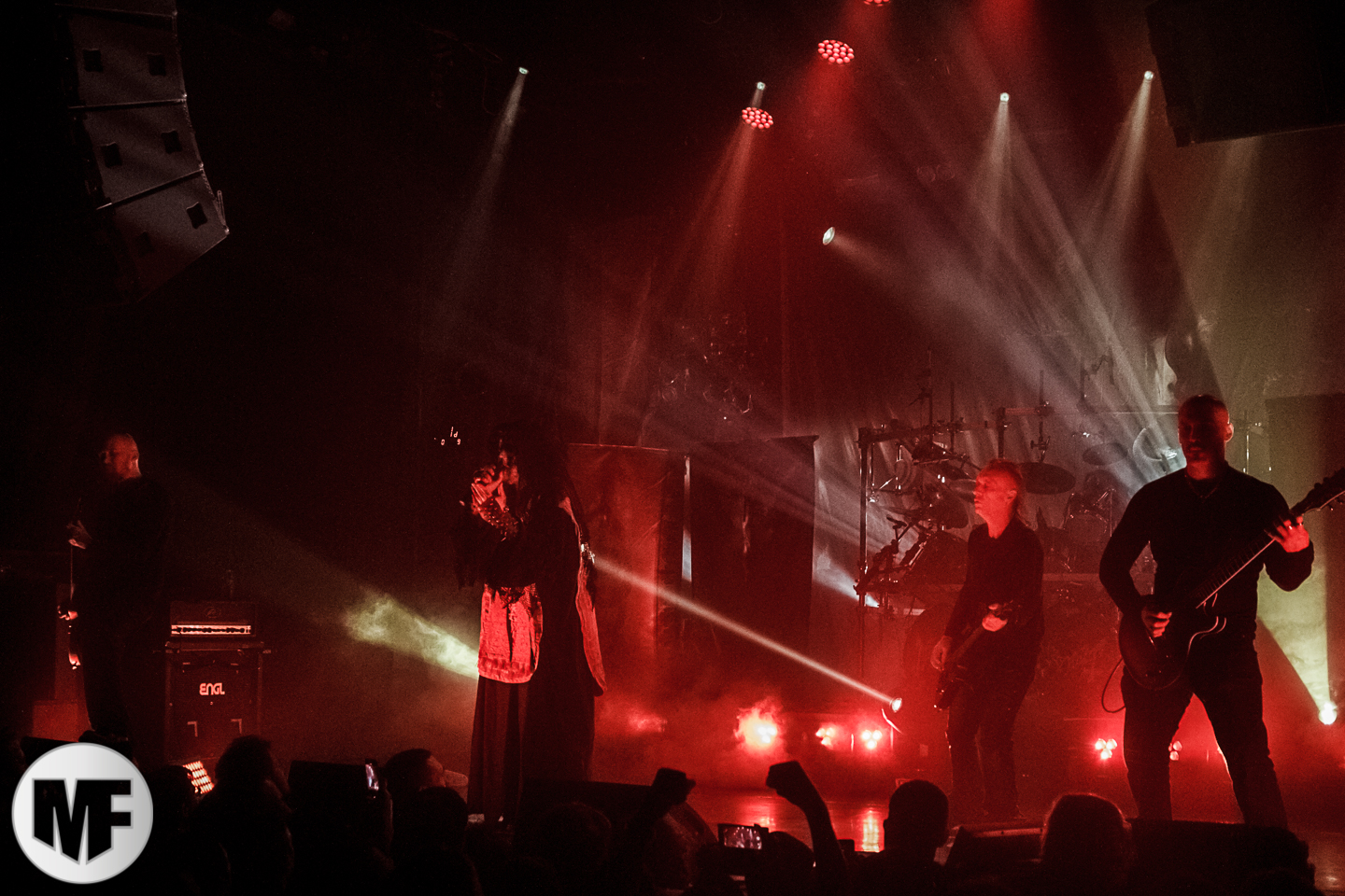 Les lumières s’allument et les ombres que l’on pouvait discerner commencent à jouer. Une vraie puissance émane du premier riff qui enflamme le public, puis Gaahl fait son entrée, tel un prince des ténèbres. L‘ambiance est à son paroxysme ! On retrouve l’esprit GORGOROTH des années 2000 avec des grosses influences de TRELLDOM et GOD SEED (des projets parallèles de Gaahl) ainsi que cette atmosphère oppressante à laquelle Gaahl nous a accoutumés.