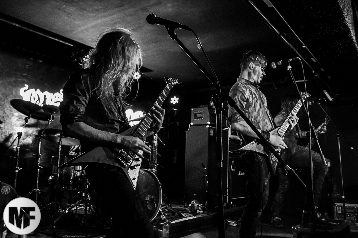 On y est, la tempête du nom de MISÞYRMING entre en scène et l’atmosphère devient glaciale. Puis les guitares déclenchent cette force mystique qui déferle sur la salle tel un typhon.