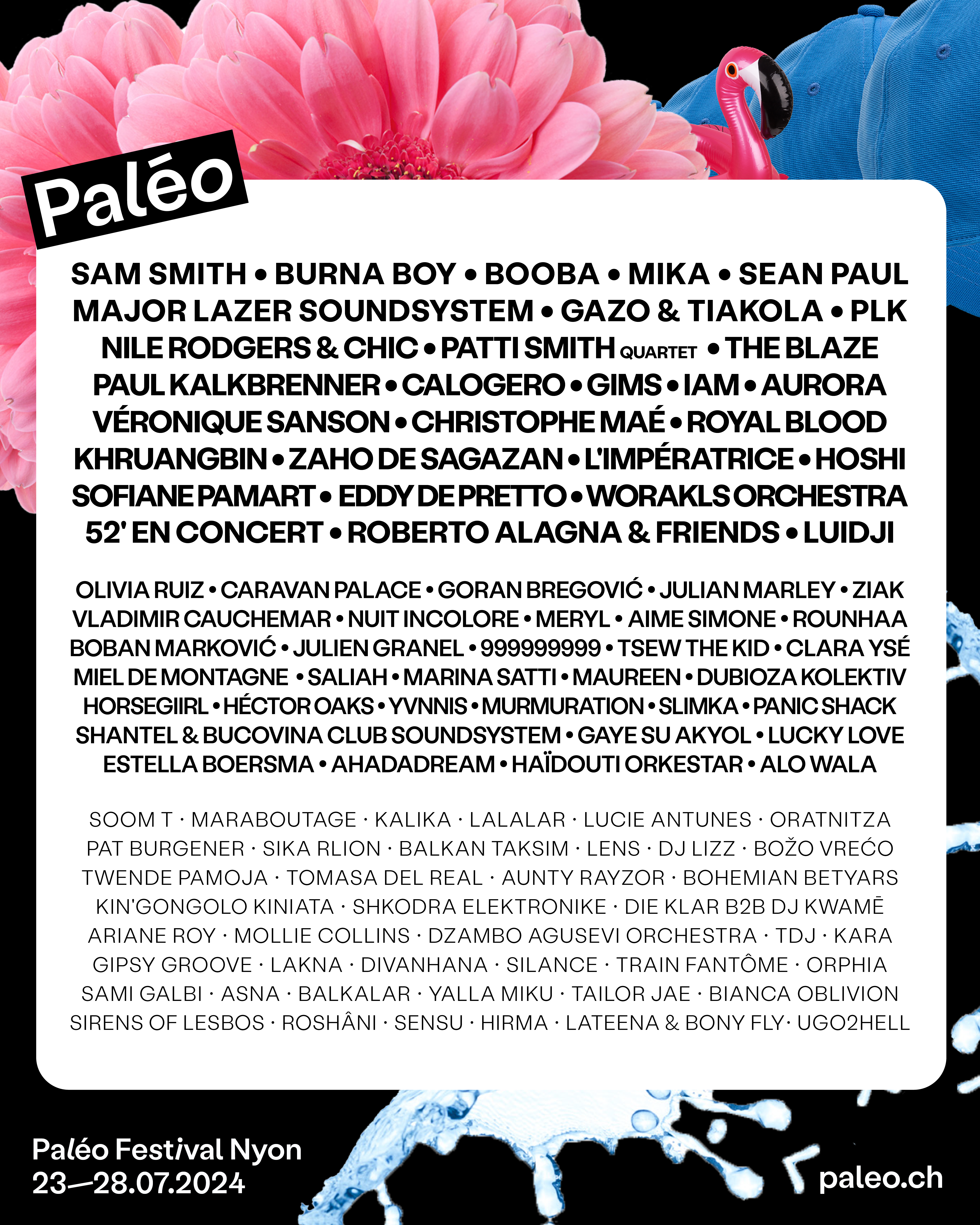 En 2024, Paléo signe une programmation qui élargit l’horizon musical et géographique: pop, rock, rap, dancehall, afrobeats, reggae, électro, opéra, funk... Une centaine d’artistes et autant d’univers musicaux cohabiteront sur la Plaine de l’Asse du 23 au 28 juillet.