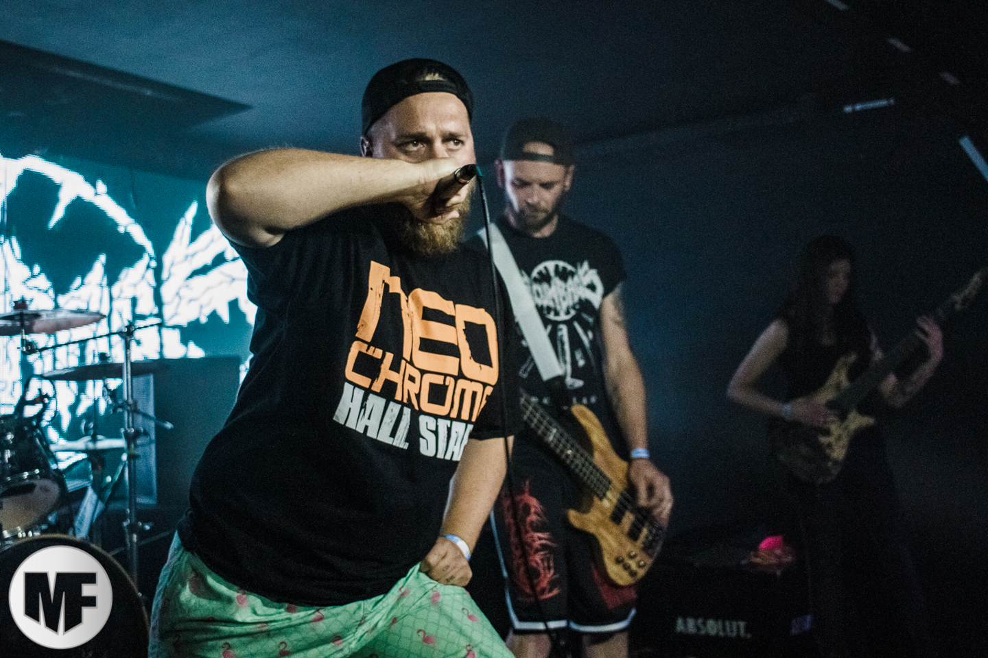 Ce sont les Parisiens de NEVROPSY qui ouvrent ce festival. L’ambiance est particulièrement décontractée et calme jusqu’aux premiers riffs. Dès lors, on sent que ces deux jours baigneront dans la violence et la puissance.