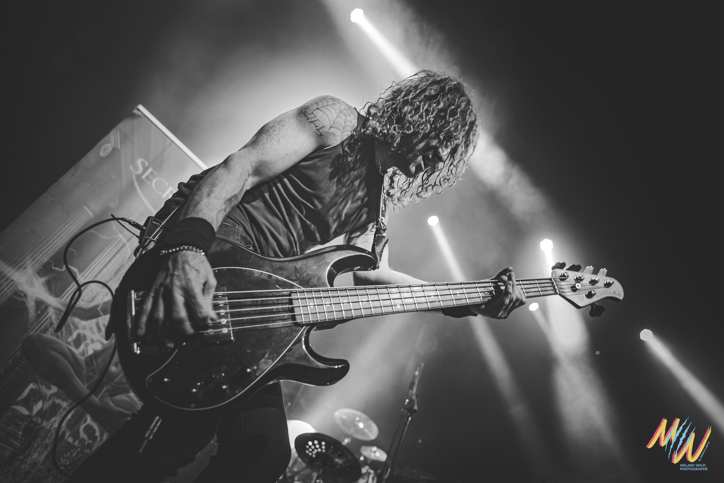 Secret Sphere a mis le feu à la salle d'entrée de jeu avec un set ultra énergique et une section rythmique omniprésente. Les 6 titres joués ce soir, dont 2 issus du dernier album, Blackened Heartbeat, sont passés à la vitesse de la lumière, avec un Roberto Messina, chanteur originel, revenu dans le groupe après 8 ans d’absence, impressionnant de bout en bout que ce soit sur les nouvelles compositions comme « Pyscho Kid » et « Blackened Heartbeat », ou sur les classiques du groupe.