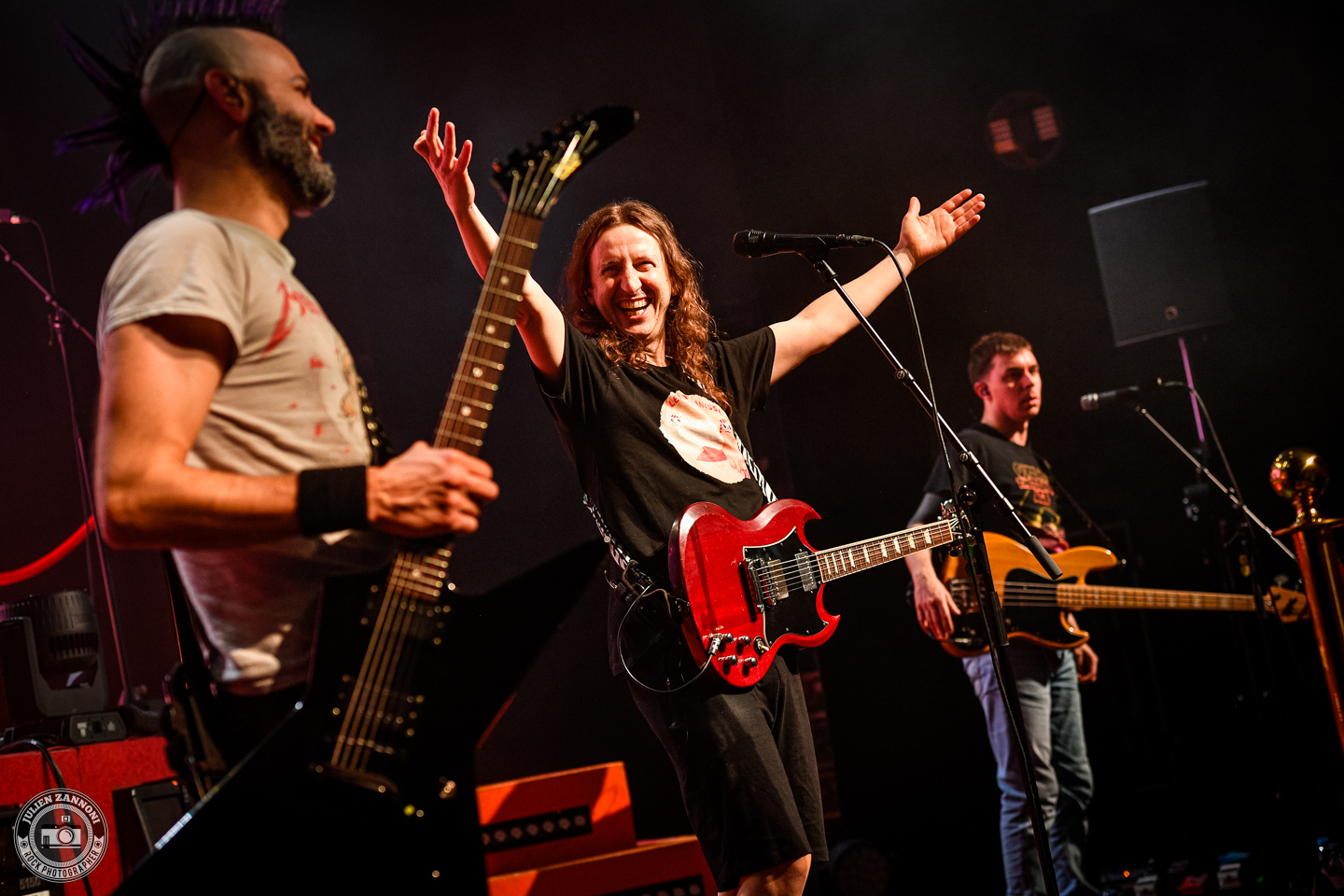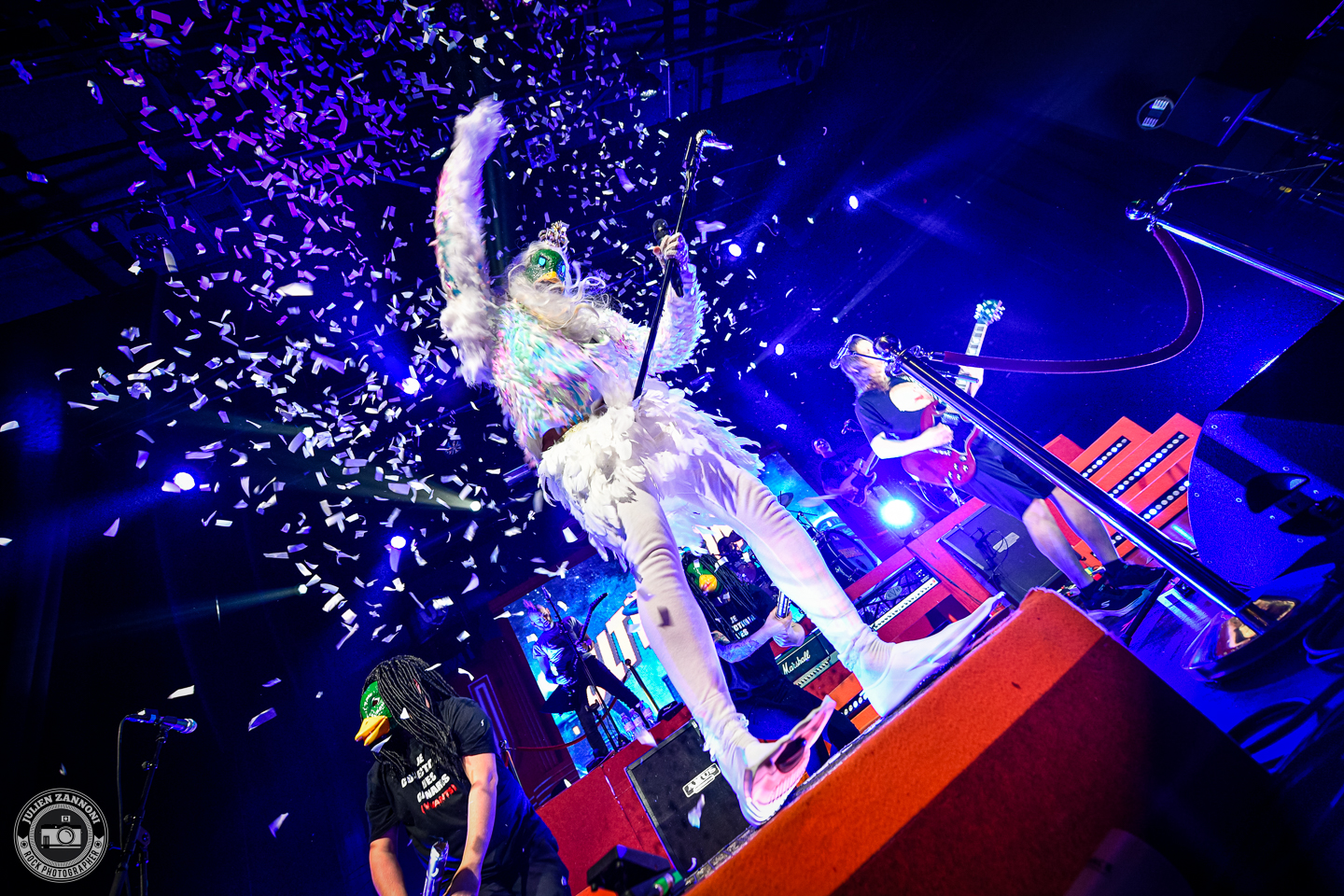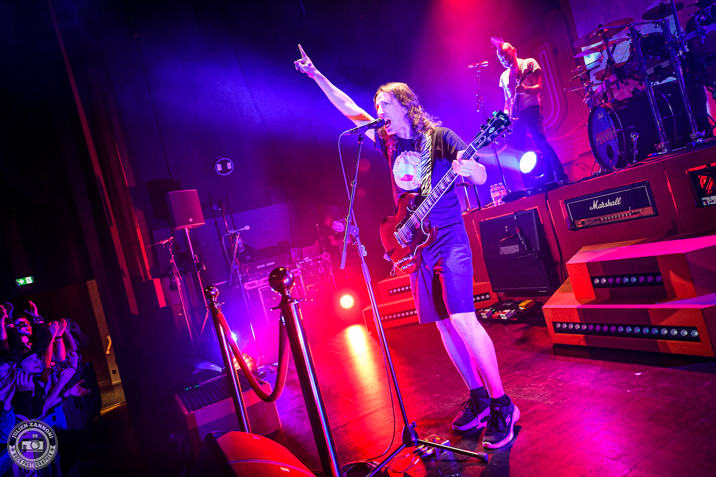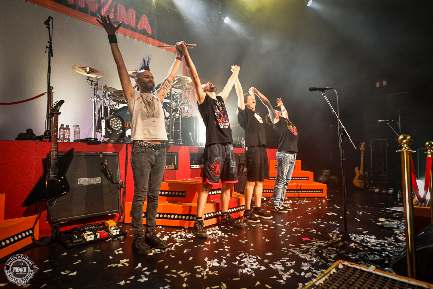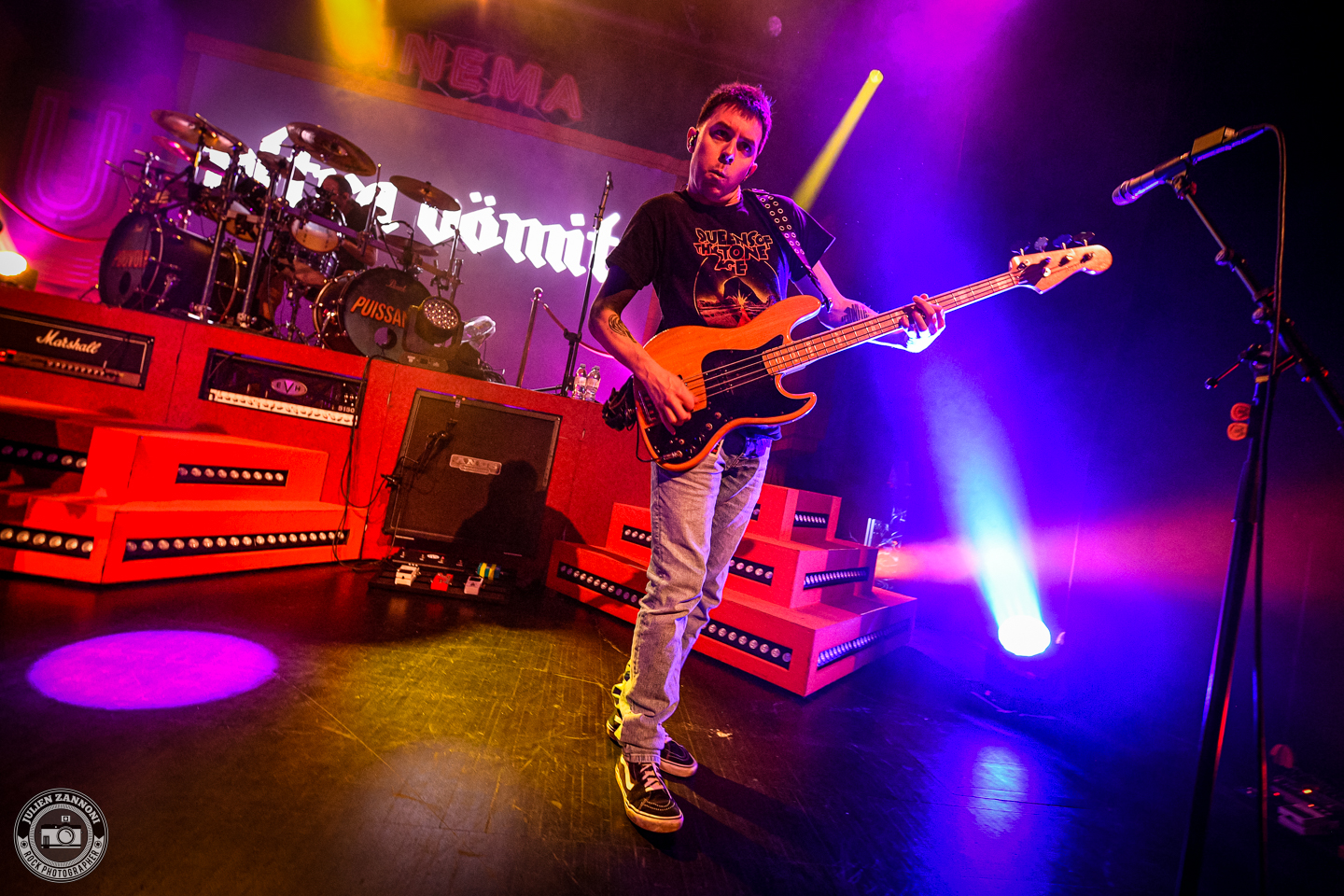 Ultra Vomit a ensuite pris le relais, fidèle à son mélange unique de metal et d’humour. Setlist rodée, interludes absurdes et énergie communicative : tout y était. Comme à leur habitude, les Nantais ont enchaîné les titres avec précision et décontraction, déclenchant autant de headbangs que de rires dans le public. L’ambiance était tellement survoltée que quelques crash barrières en plastique n’ont pas résisté à l’énergie de la foule !