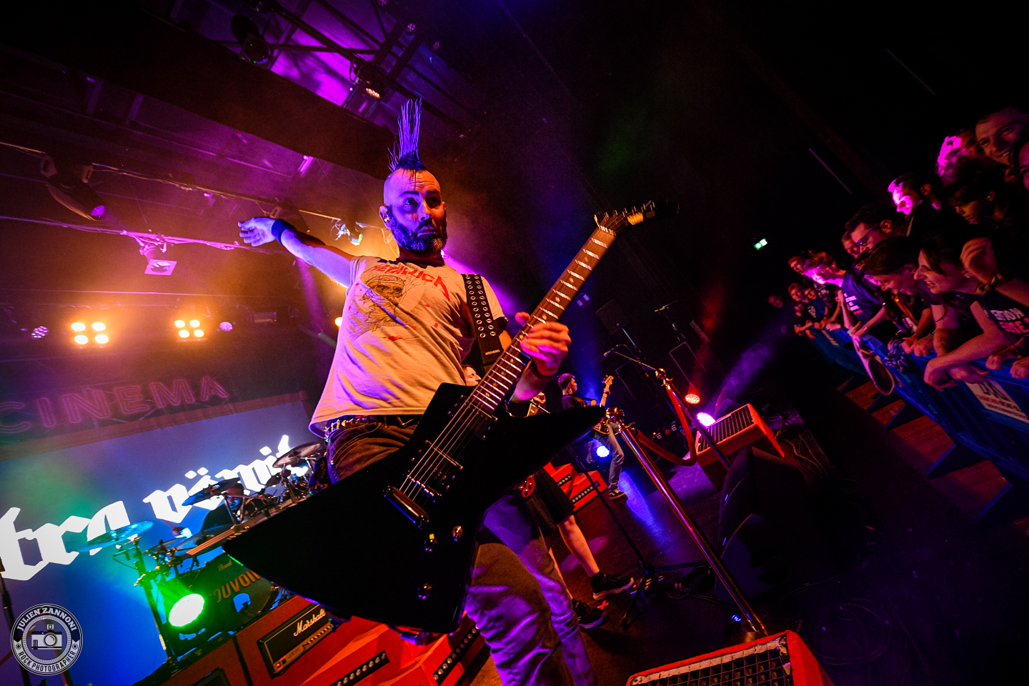 Samedi 1er février, la salle L'EMC2 de Chamonix a vibré sous les assauts de Ultra Vomit et Last Flag. Avec ses gradins rétractables et son plateau spacieux, cette belle salle modulable offre un cadre idéal pour les concerts. Facile d’accès grâce au parking souterrain juste devant, elle a accueilli environ 350 personnes dans une ambiance survoltée, avec un accueil chaleureux de l’équipe sur place.