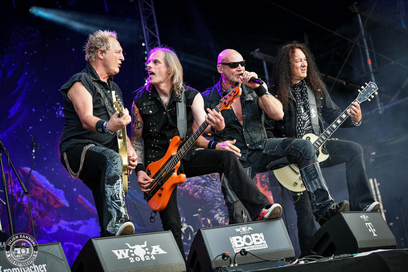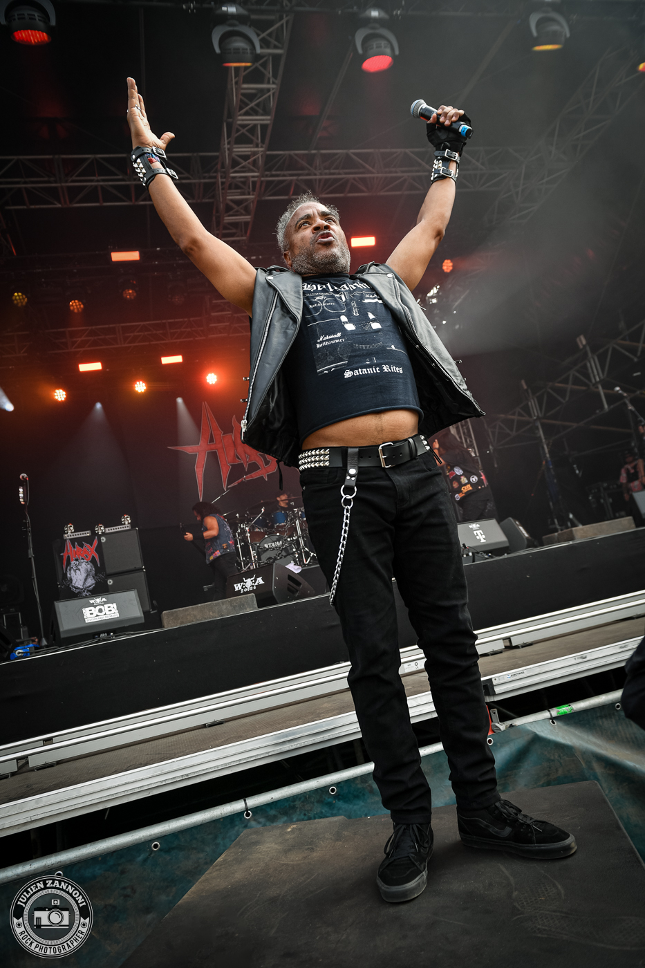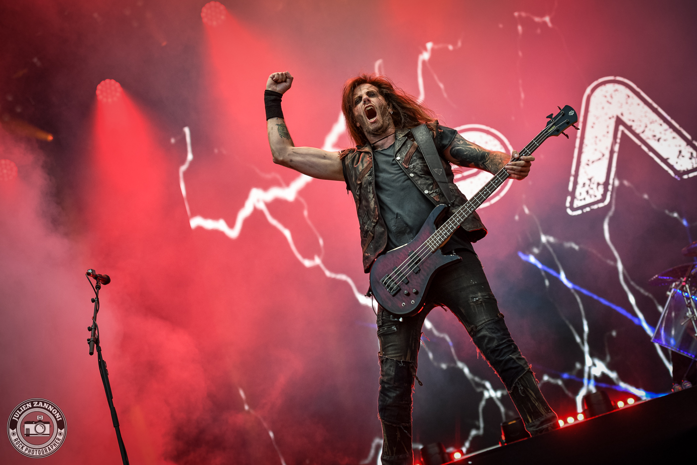 Le festival a démarré fort avec Skyline, le groupe officiel de Wacken. Je les connais bien, étant leur photographe attitré, mais cette fois-ci, il y avait une petite surprise : Joey Belladonna d'Anthrax est monté sur scène pour un featuring qui a mis le feu ! C'était un moment incroyable à immortaliser et surtout, une excellente manière de lancer les festivités.