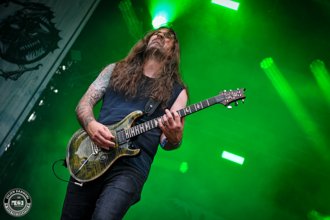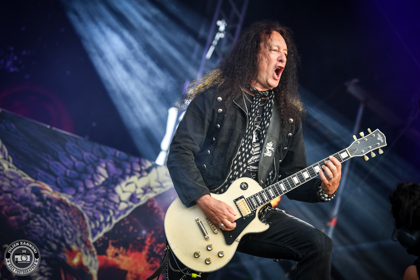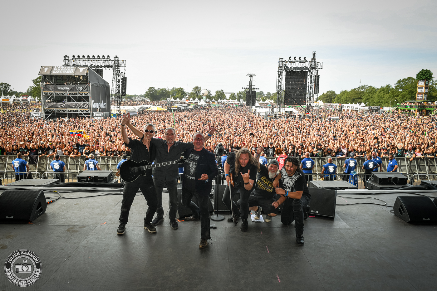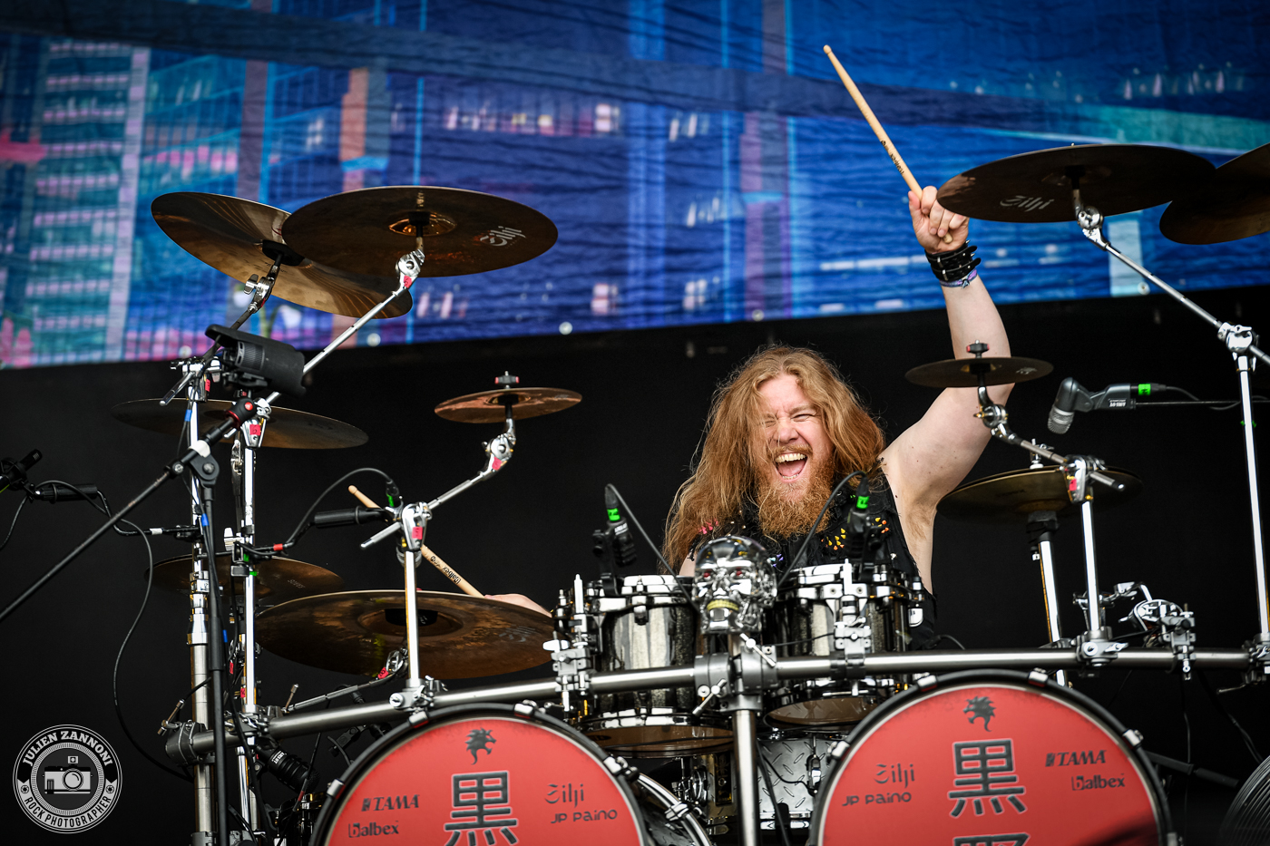 Le festival a démarré fort avec Skyline, le groupe officiel de Wacken. Je les connais bien, étant leur photographe attitré, mais cette fois-ci, il y avait une petite surprise : Joey Belladonna d'Anthrax est monté sur scène pour un featuring qui a mis le feu ! C'était un moment incroyable à immortaliser et surtout, une excellente manière de lancer les festivités.