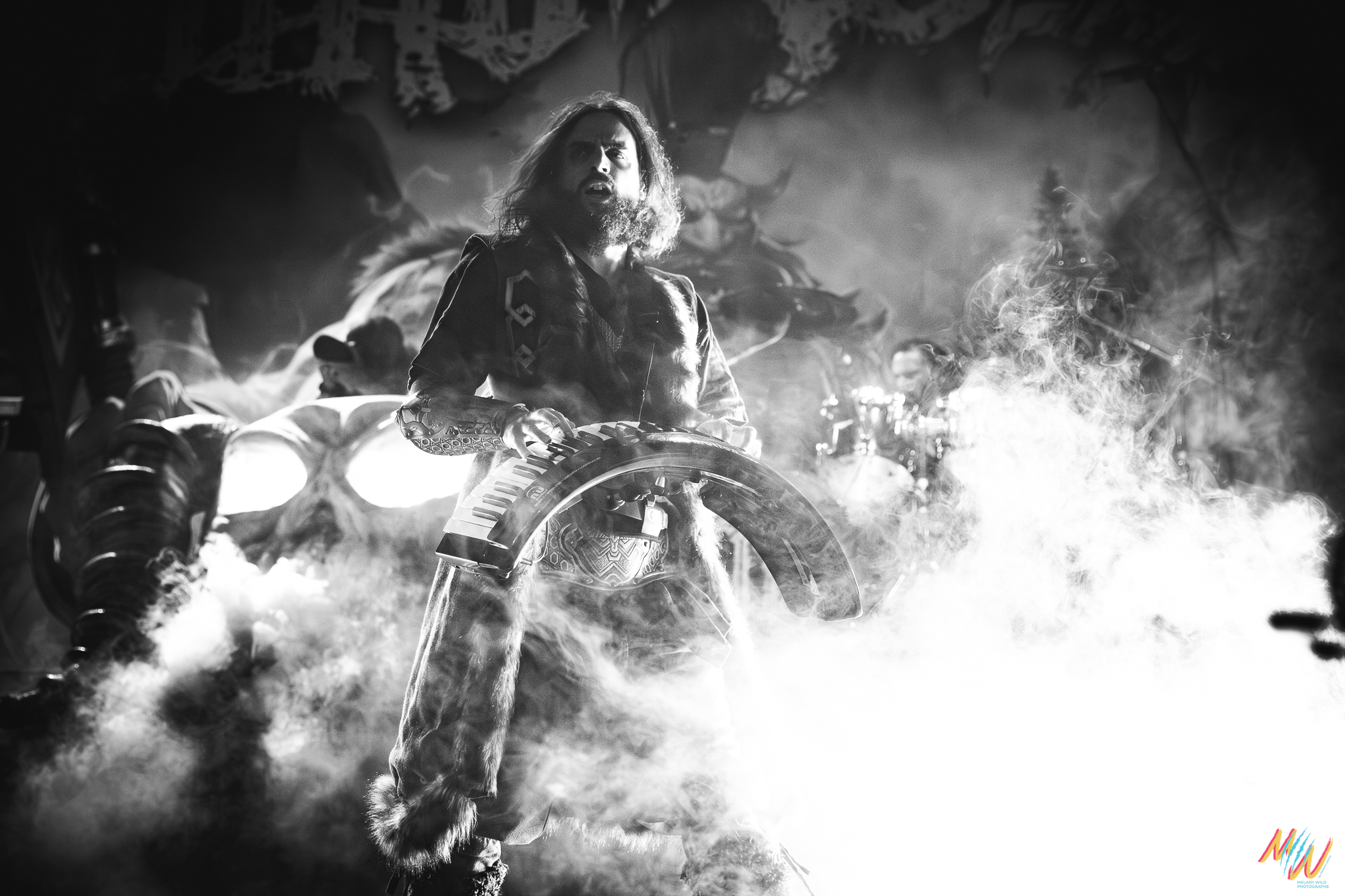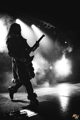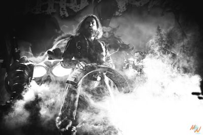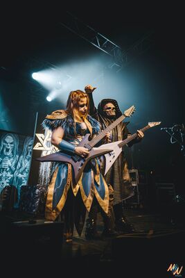 Peu avant 21 h 50, le public est en folie et, pour patienter avant l’arrivée de Wind Rose, les fans se mettent à construire des tours d'Ecocup, en essayant de faire la pile la plus haute possible. La scène est maintenant prête à accueillir les Italiens: la batterie et le clavier sont légèrement surélevés, séparés par un crâne à cornes, et c’est parti avec « Dance Of The Axes », acclamé par une foule brandissant des pioches en plastique, tel un cri de victoire ! L’ambiance est au beau fixe et bon enfant. Voir toute cette passion autour de la musique rassembler autant de monde au même endroit, c’est beau à voir !