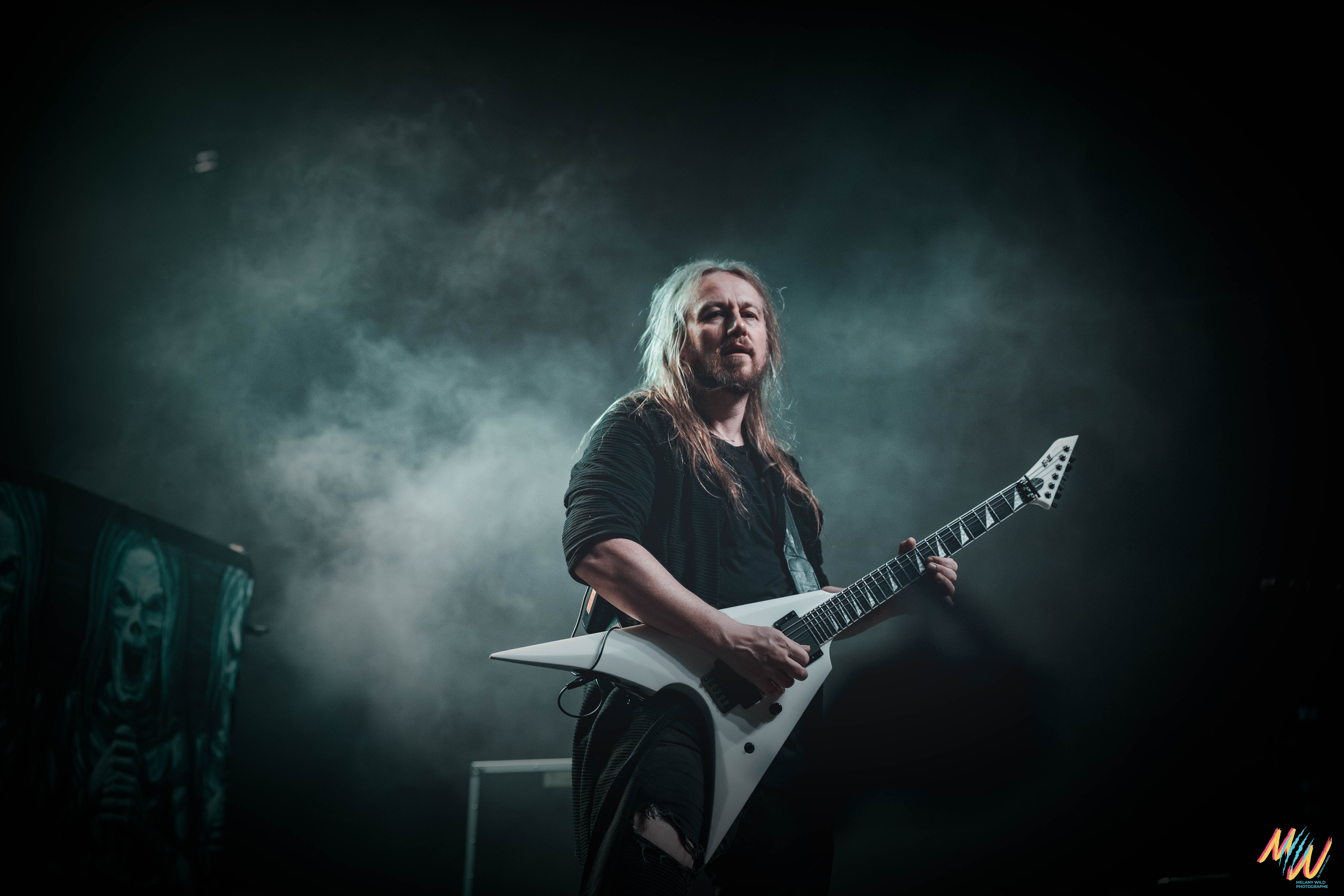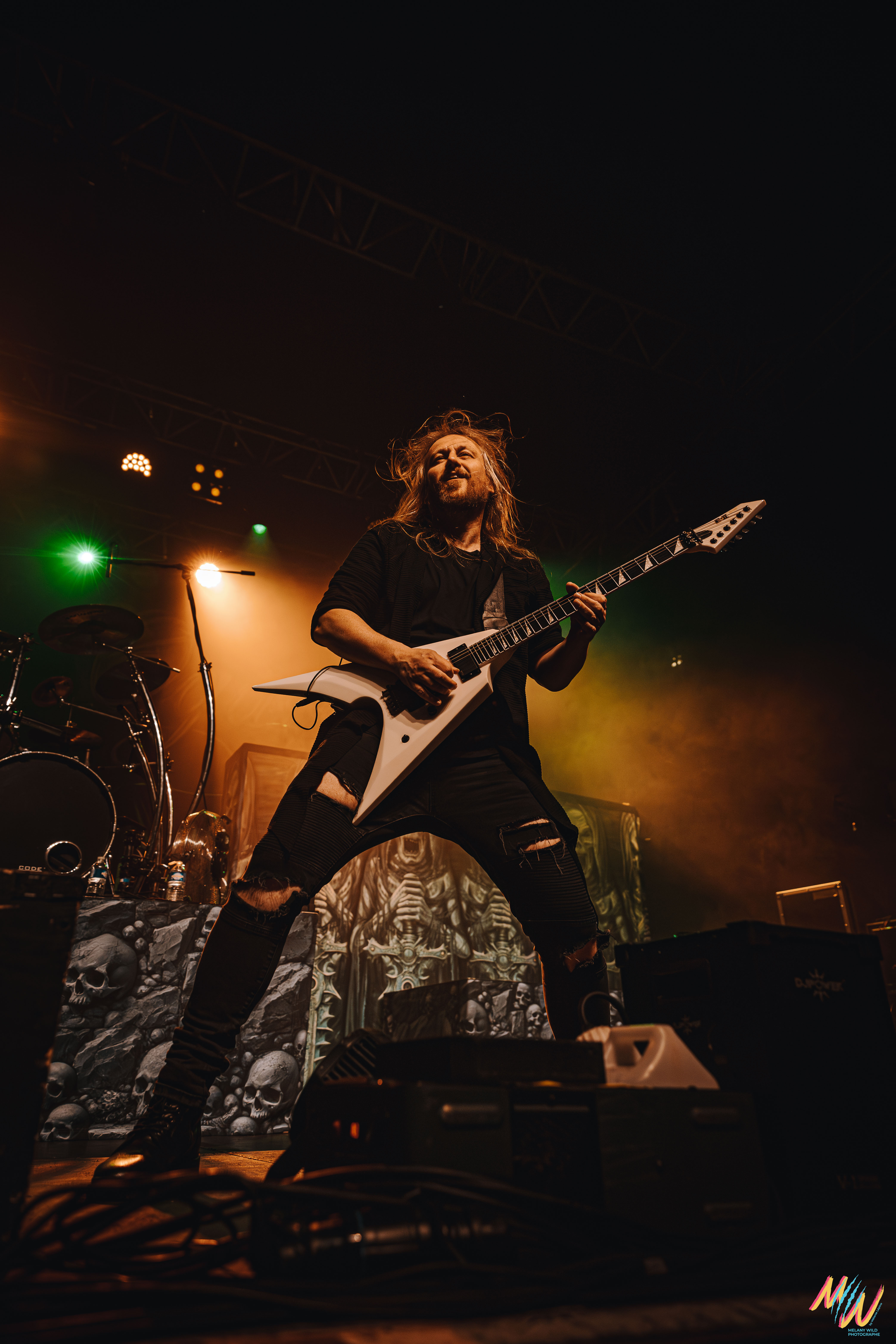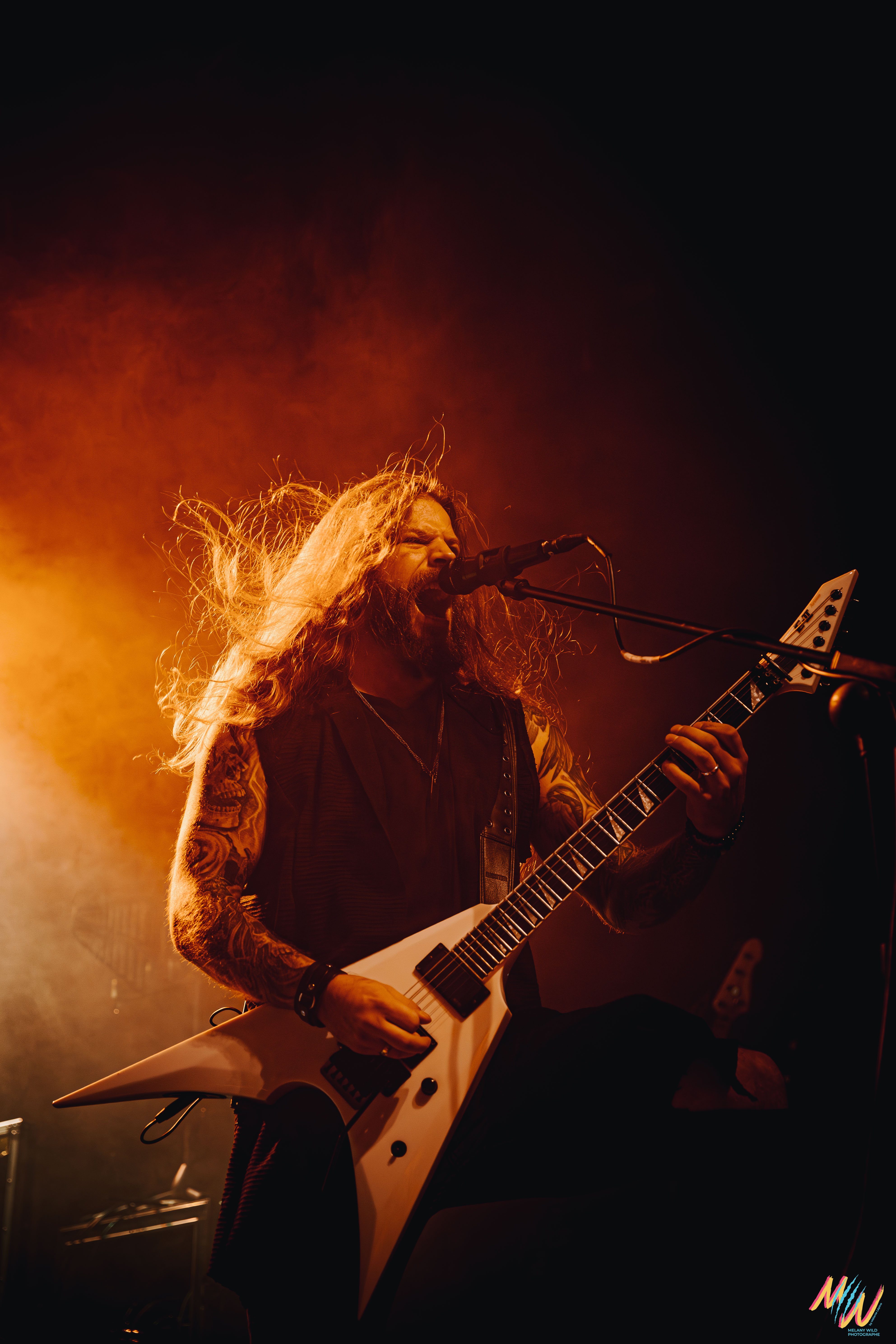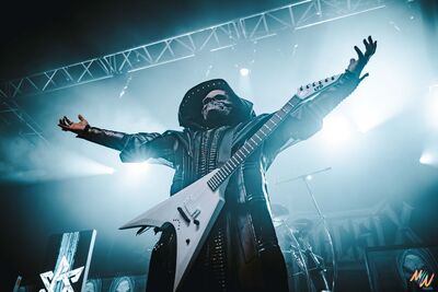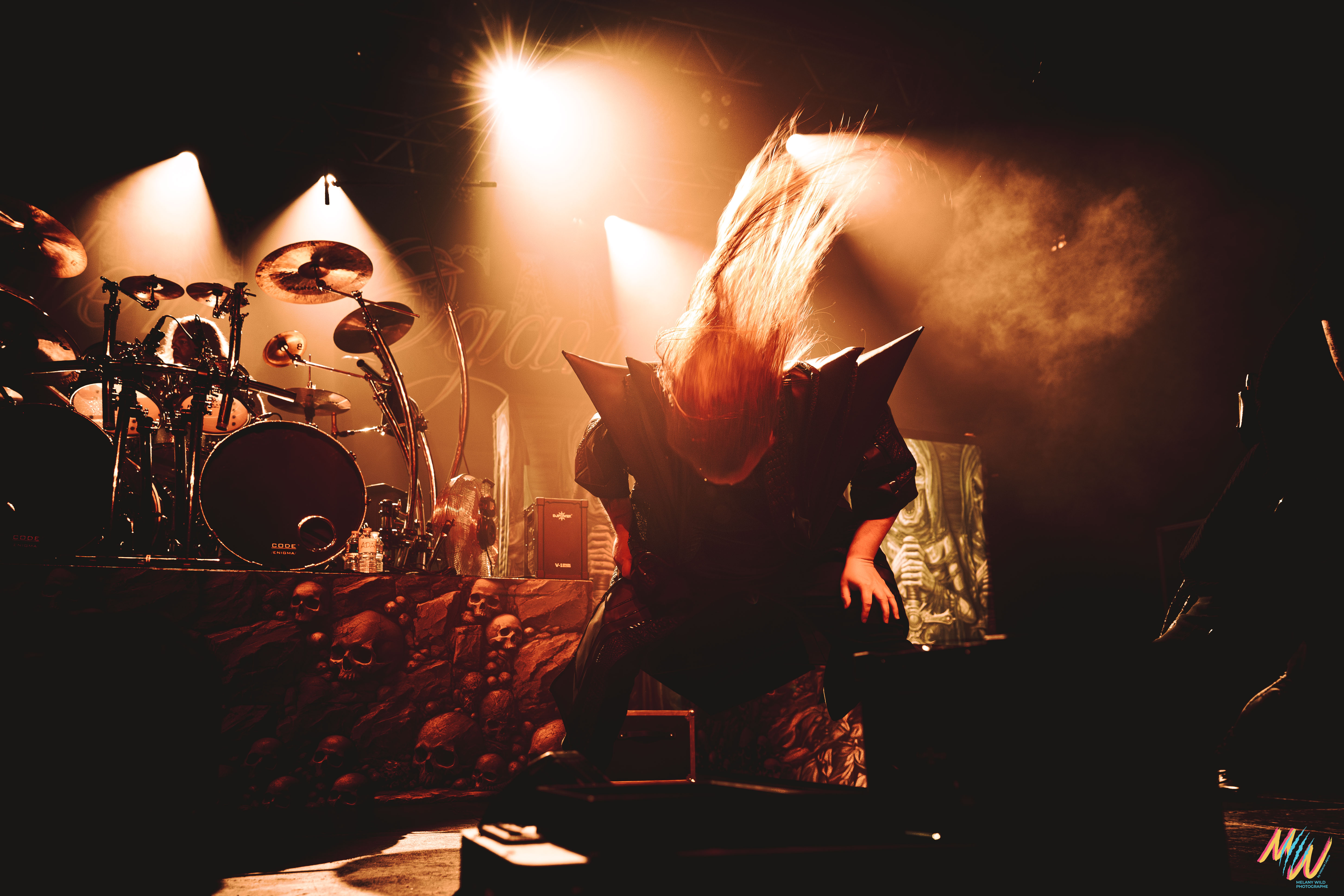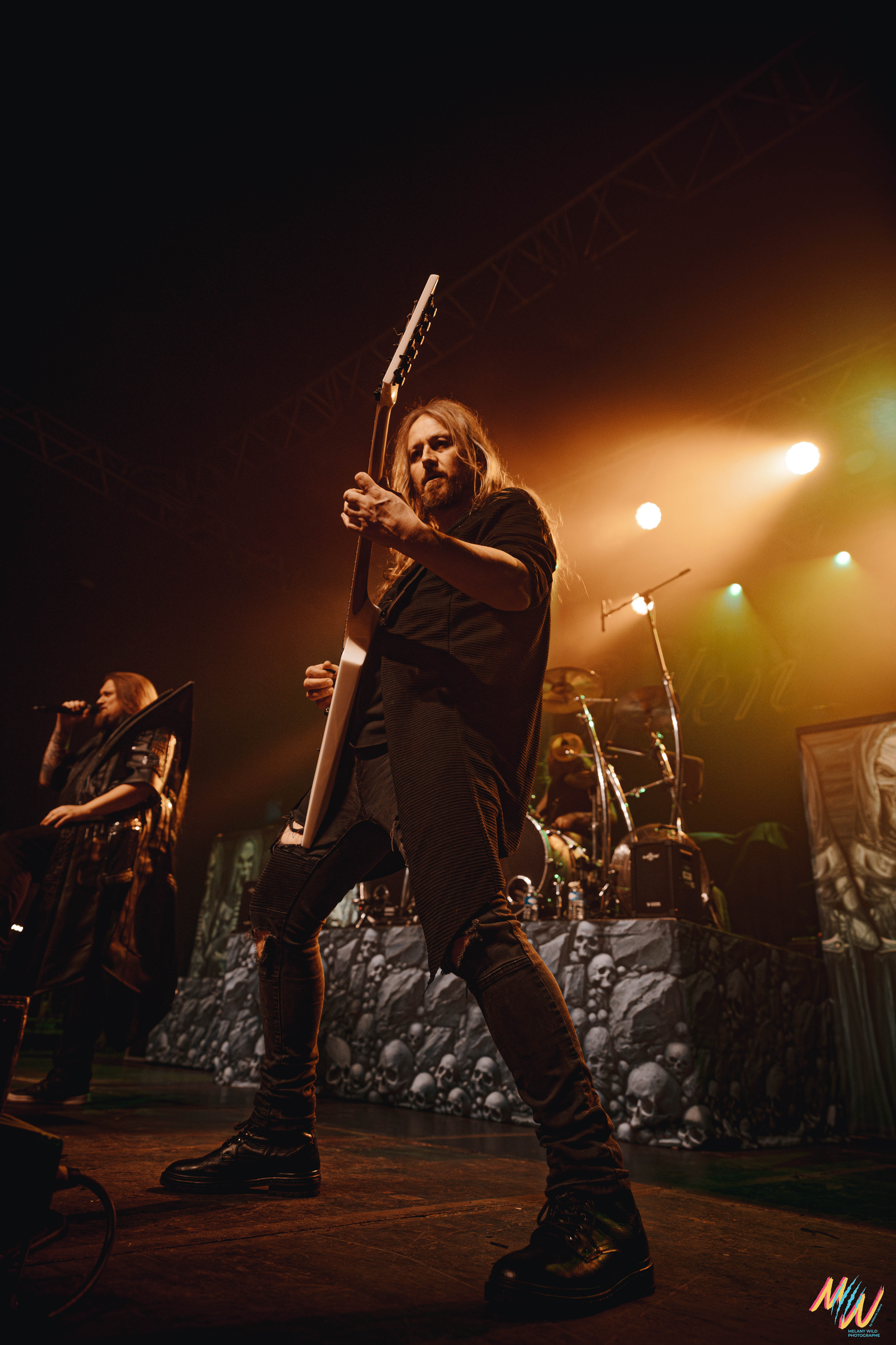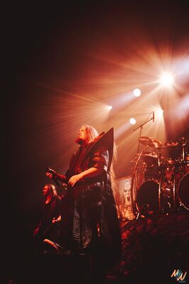 Courte pause et on enchaine avec Orden Ogan, deuxième groupe de power metal allemand. Les Allemands portent des tenues de scène sobres, haut et pantalon noirs, ce qui met davantage l’accent sur leur musique. Leur style et prestance scénique me rappellent un peu Dynazty, avec qui ils ont d’ailleurs un titre en featuring. Côté setlist, nous aurons le droit à huit titres, en commençant avec « F.E.V.E.R ». Ils repasseront en revue leur discographie à partir de leur album To The End (2012) jusqu’à The Order Of Fear (2024). Tout du long, la pyro et les fumigènes rythment leur prestation pour un show efficace !