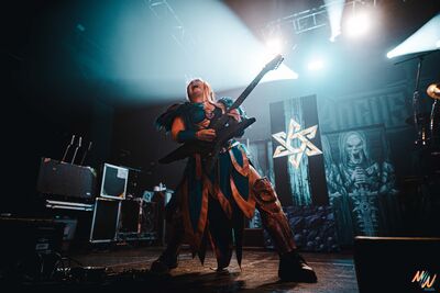 Les musiciens ont chacun leur univers, très fantasy, notamment dans les costumes aux influences geek/superhéros. Le set est court, les singles s'enchaînent : « Sixcalibur », « Laser Shooting Dinosaur » jusqu'à l’apparition d’une mascotte dinosaure sur scène sur « Ride to Hell », ce qui animera encore plus la salle. Rarement vu un public aussi énergique et réactif dès la première partie. Malheureusement, c’est déjà la fin !