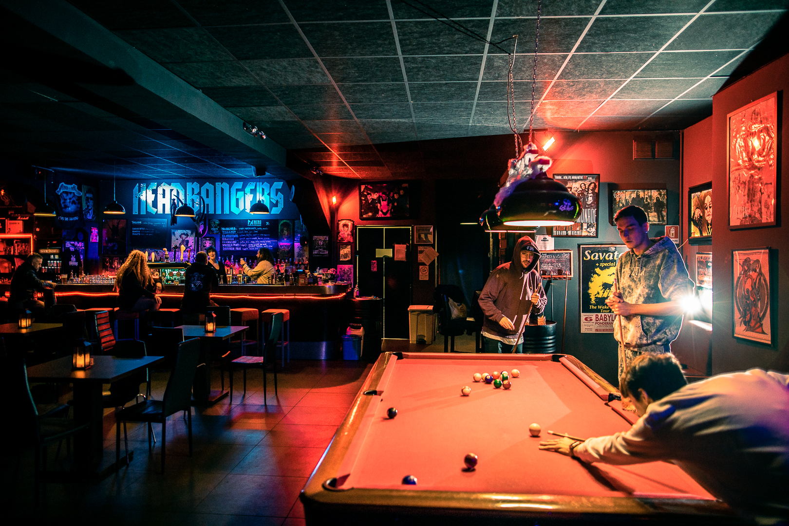 Combining heavy metal spirit, punk attitude, and a pinch of dark sarcasm, you can find us every day from 21.00 pm to 02.00 am (on Fridays and Saturdays from 21,00 pm to 04.00 am): draft and bottled beers, long drinks and fresh food always available.