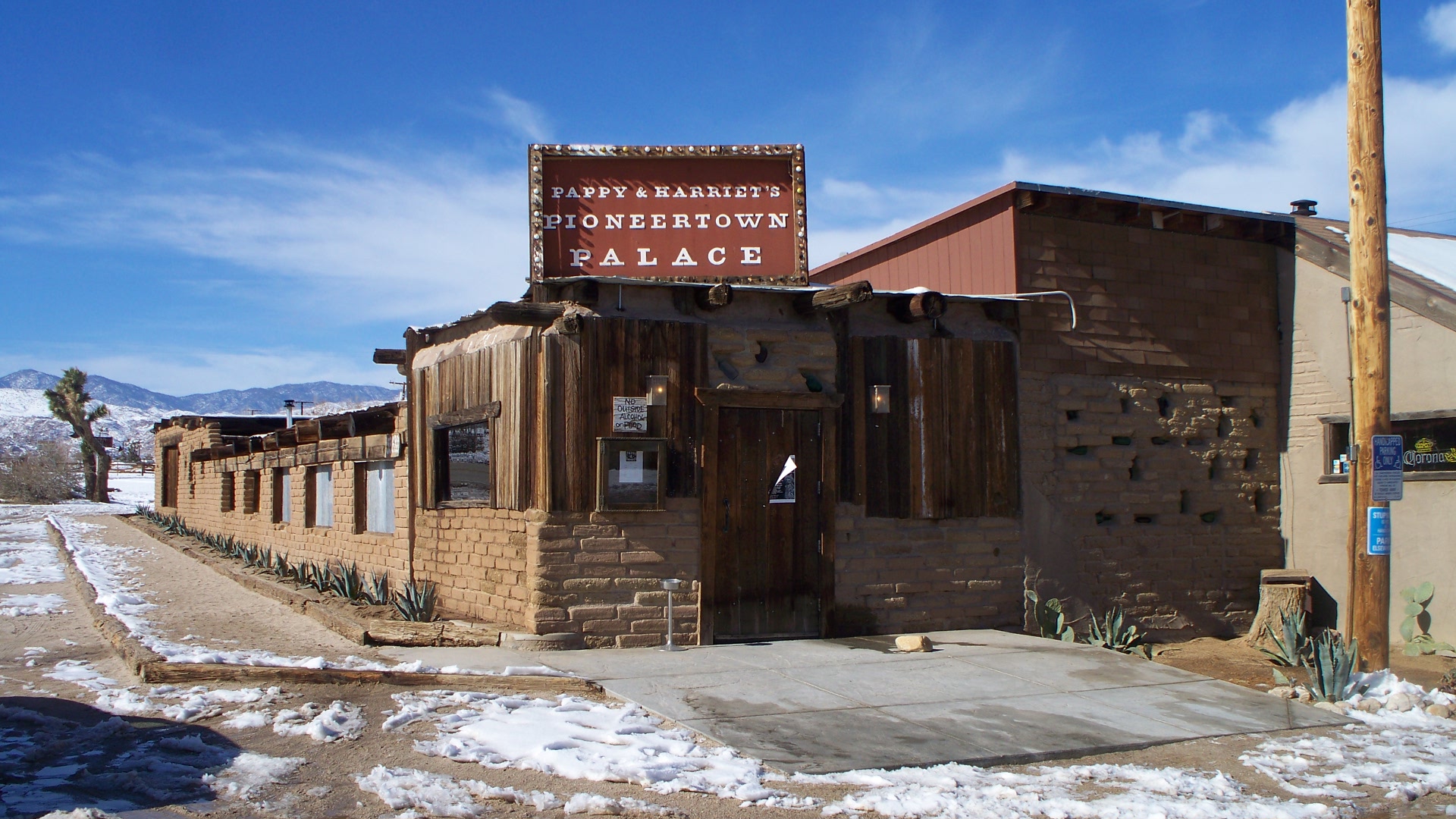 IN 1982, Harriet and her husband, Claude “Pappy” Allen, opened, “Pappy + Harriet’s Pioneertown Palace.” While the bikers still hung around, Pappy and Harriet’s presence created more of a family atmosphere. With family-style Santa Maria bbq, hearty comfort food, and live music featuring Pappy and Harriet, The Palace quickly became a local favorite with all walks of life getting along under one roof!