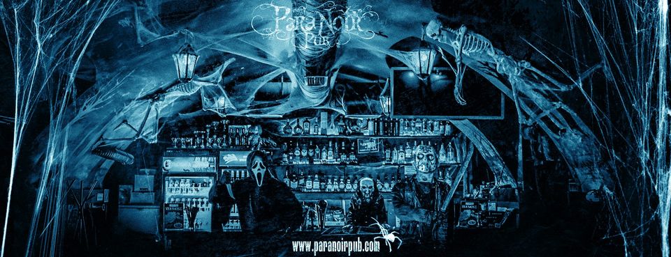 Cocktails [&] rock music served up in a dark bar featuring scary film characters on the walls.